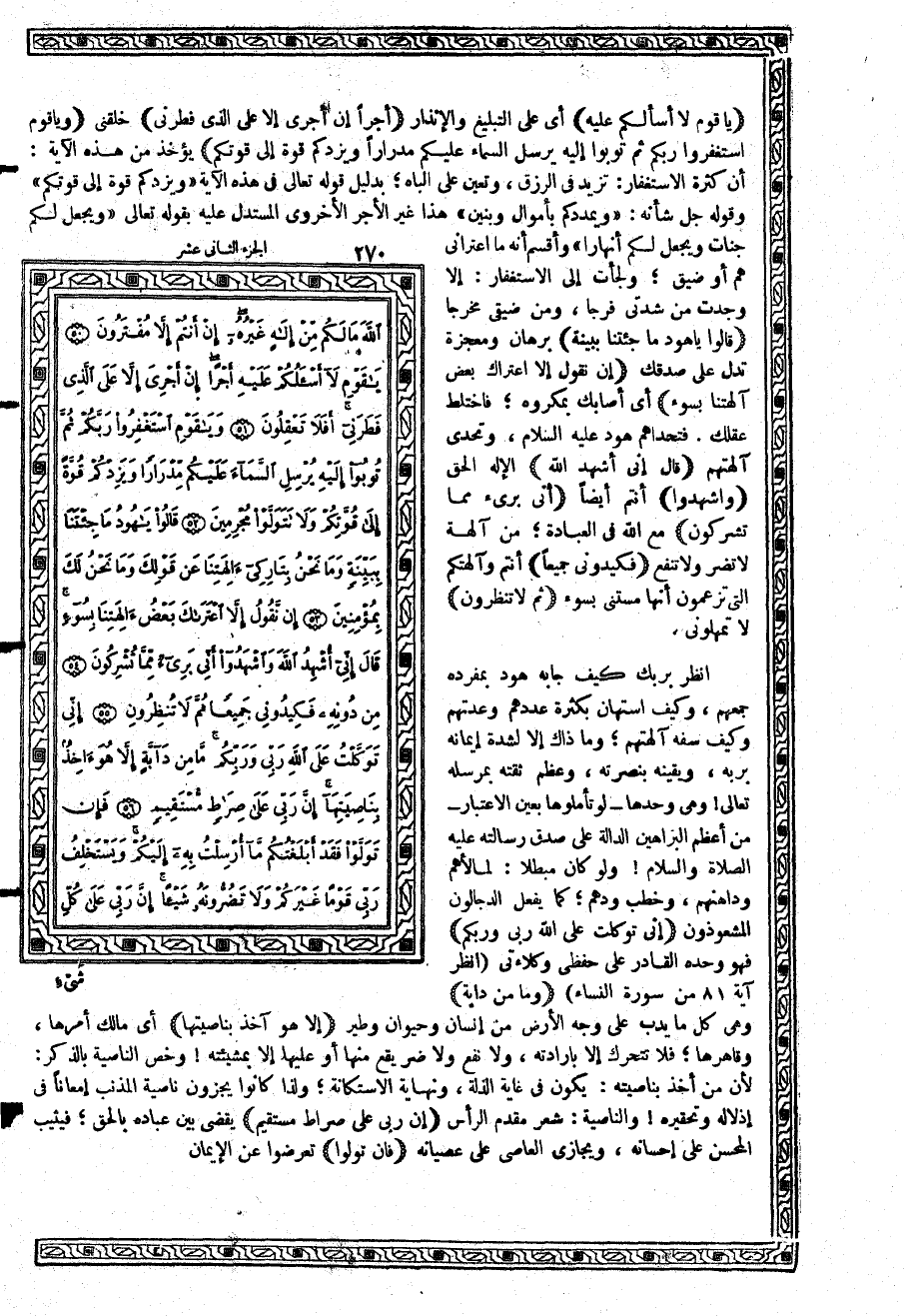 {وَيقَوْمِ اسْتَغْفِرُواْ رَبَّكُمْ ثُمَّ تُوبُواْ إِلَيْهِ يُرْسِلِ السَّمَآءَ عَلَيْكُمْ مِّدْرَاراً وَيَزِدْكُمْ قُوَّةً إِلَى قُوَّتِكُمْ} يؤخذ من هذه الآية؛ أن كثر الاستغفار: تزيد في الرزق، وتعين على الباه؛ بدليل قوله تعالى في هذه الآية {وَيَزِدْكُمْ قُوَّةً إِلَى قُوَّتِكُمْ} وقوله جل شأنه: {وَيُمْدِدْكُمْ بِأَمْوَالٍ وَبَنِينَ} هذا غير الأجر الأخروي المستدل عليه بقوله تعالى: {وَيَجْعَل لَّكُمْ جَنَّاتٍ وَيَجْعَل لَّكُمْ أَنْهَاراً} وأقسم أنه ما اعتراني هم أو ضيق؛ ولجأت إلى الاستغفار: إلا وجدت من شدتي فرجاً، ومن ضيقي مخرجاً {يُرْسِلِ السَّمَآءَ عَلَيْكُمْ مِّدْرَاراً وَيَزِدْكُمْ قُوَّةً إِلَى قُوَّتِكُمْ وَلاَ تَتَوَلَّوْاْ مُجْرِمِينَ} برهان ومعجزة تدل على صدقك