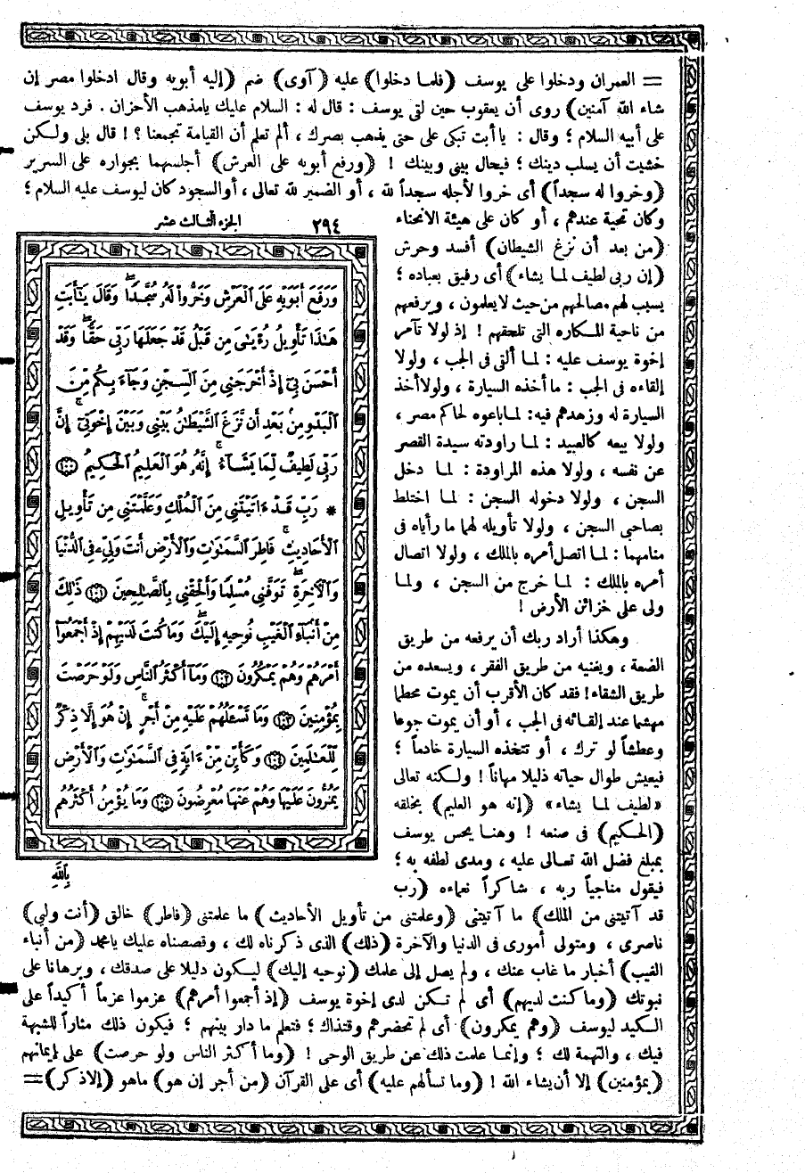 {وَرَفَعَ أَبَوَيْهِ عَلَى الْعَرْشِ} أجلسهما بجواره على السرير {وَخَرُّواْ لَهُ سُجَّدَاً} أي خروا لأجله سجداًلله، أو الضميرلله تعالى، أو السجود كان ليوسف عليه السلام؛ وكان تحية عندهم، أو كان على هيئة الانحناء {مِن بَعْدِ أَن نَّزغَ الشَّيْطَانُ} أفسد وحرش {إِنَّ رَبِّي لَطِيفٌ لِّمَا يَشَآءُ} أي رفيق بعباده؛ يسبب لهم مصالحهم من حيث لا يعلمون، ويرفعهم من ناحية المكاره التي تلحقهم إذ لولا تآمر إخوة يوسف عليه لما ألقي في الجب، ولولا إلقاءه في الجب ما أخذه السيارة، ولولا أخذ السيارة له وزهدهم فيه لما باعوه لحاكم مصر، ولولا بيعه كالعبيد لما راودته سيدة القصر عن نفسه، ولولا هذه المراودة لما دخل السجن، ولولا دخوله السجن لما اختلط بصاحبي السجن، ولولا تأويله لهما ما رأياه في منامهما لما اتصل أمره بالملك، ولولا اتصال أمره بالملك لما خرج من السجن، ولما وليَّ على خزائن الأرض