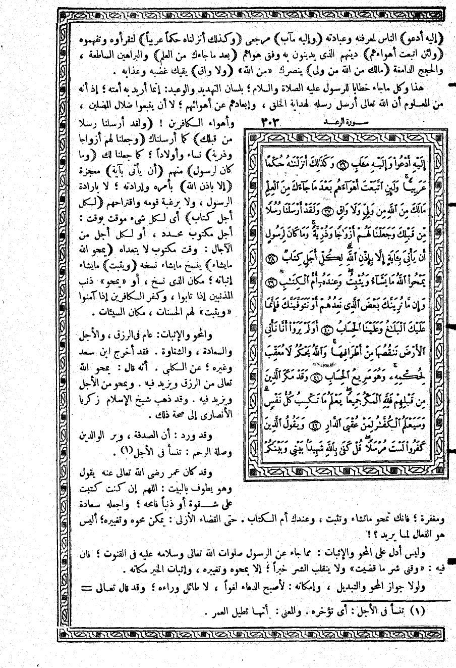 وقد كان عمر رضي الله تعالى عنه يقول وهو يطوف بالبيت: اللهم إن كنت كتبت عليّ شقوة أو ذنباً فامحه؛ واجعله سعادة ومغفرة؛ فإنك تمحو ما تشاء وتثبت، وعندك أم الكتاب. حتى القضاء الأزلي: يمكن محوه وتغييره؛ أليس هو الفعال لما يريد؟