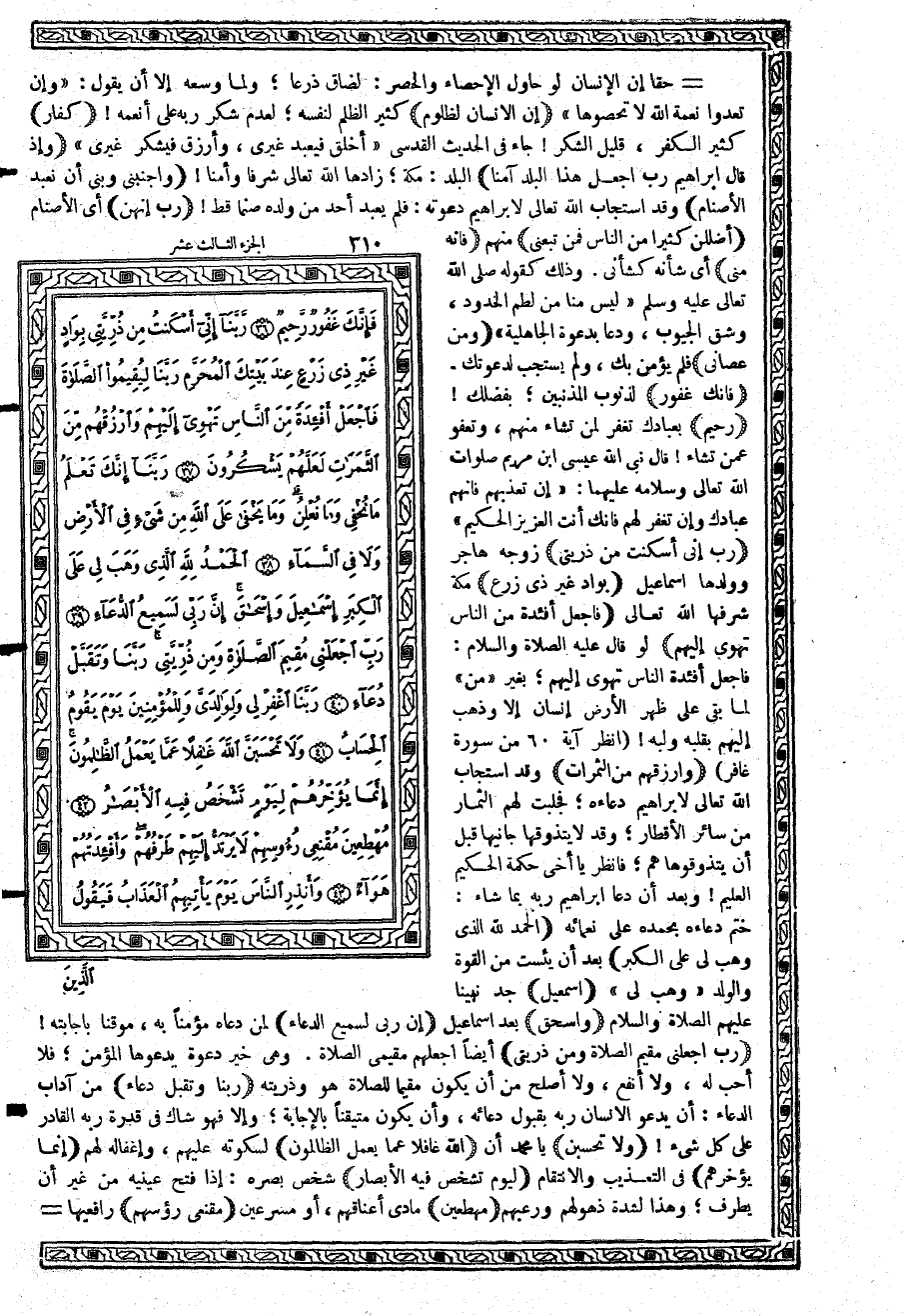 {رَّبَّنَآ إِنَّي أَسْكَنتُ مِن ذُرِّيَّتِي} زوجه هاجر وولدها إسماعيل {بِوَادٍ غَيْرِ ذِي زَرْعٍ} مكة شرفها الله تعالى {فَاجْعَلْ أَفْئِدَةً مِّنَ النَّاسِ تَهْوِي إِلَيْهِمْ} لو قال عليه الصَّلاة والسَّلام: فاجعل أفئدة الناس تهوى إليهم؛ بغير «من» لما بقي على ظهر الأرض إنسان إلا وذهب إليهم بقلبه ولبه (انظر آية 60 من سورة غافر) {وَارْزُقْهُمْ مِّنَ الثَّمَرَاتِ} وقد استجاب الله تعالى لإبراهيم دعاءه؛ فجلبت لهم الثمار من سائر الأقطار؛ وقد لا يتذوقها جانيها قبل أن يتذوقوها؛ فانظر يا أخي حكمة الحكيم العليم وبعد أن دعا إبراهيم ربه بما شاء: ختم دعاءه بحمده على نعمائه