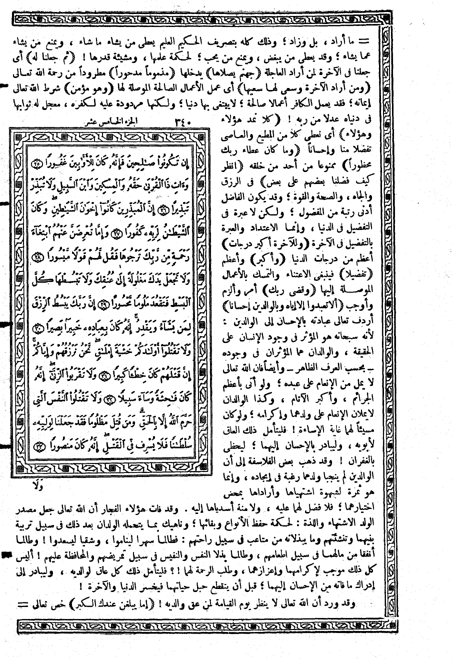 -[341]- الكبر؛ لأنه مبعث الضعف والحاجة، ومظنة الملل والاستثقال {فَلاَ تَقُل لَّهُمَآ أُفٍّ} وهي أدنى كلمة تقال في التضجر. وقد ورد عن الرسول صلوات الله تعالى وسلامه عليه: «لو علم ربك دون أف لنهى عنه»