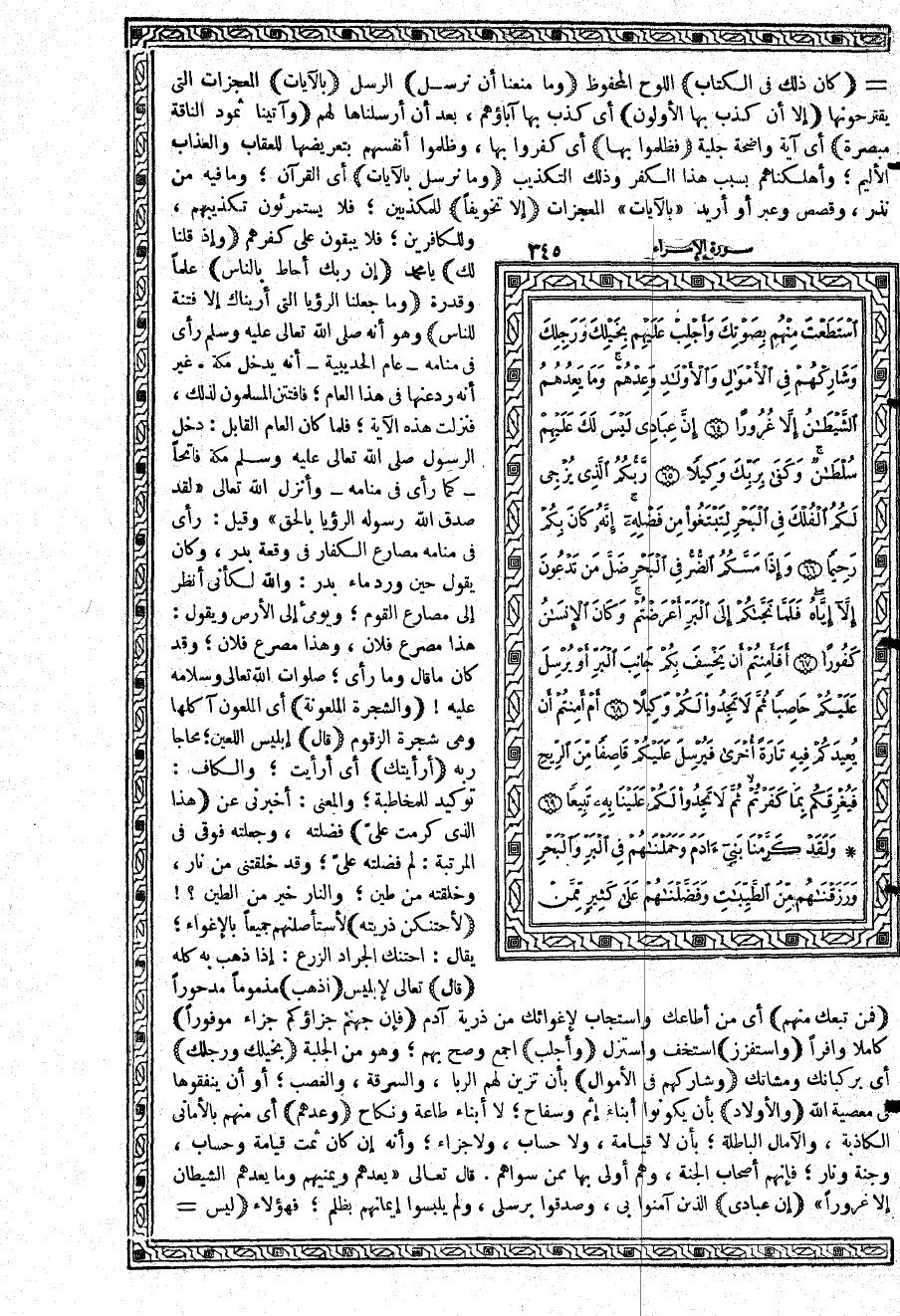 {وَإِذْ قُلْنَا لَكَ} يا محمد {إِنَّ رَبَّكَ أَحَاطَ بِالنَّاسِ} علماً وقدرة {وَمَا جَعَلْنَا الرُّؤيَا الَّتِي أَرَيْنَاكَ إِلاَّ فِتْنَةً لِّلنَّاسِ} وهو أنه رأى في منامه - عام الحديبية - أنه يدخل مكة. غير أنه رد عنها في هذا العام؛ فافتتن المسلمون لذلك، فنزلت هذه الآية؛ فلما كان العام القابل دخل الرسول مكة فاتحاً - كما رأى في منامه - وأنزل الله تعالى {لَّقَدْ صَدَقَ اللَّهُ رَسُولَهُ الرُّؤْيَا بِالْحَقِّ} وقيل: رأى في منامه مصارع الكفار في وقعة بدر، وكان يقول حين ورد ماء بدر: والله لكأني أنظر إلى مصارع القوم؛ ويوميء إلى الأرض ويقول: هذا مصرع فلان، وهذا مصرع فلان؛ وقد كان ما قال وما رأى؛ صلوات الله تعالى وسلامه عليه