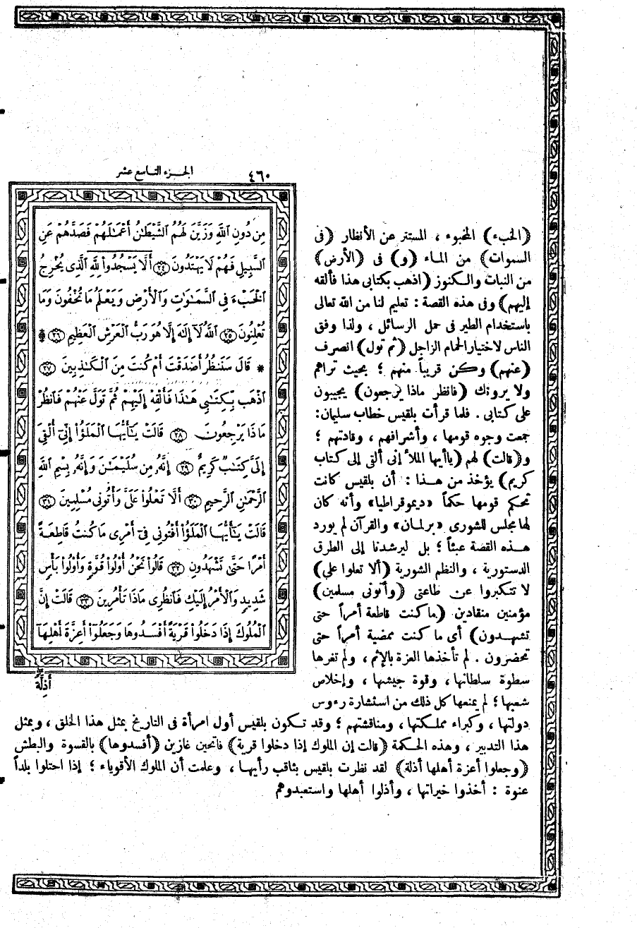 {الْخَبْءَ} المخبوء، المستتر عن الأنظار {فِي السَّمَاواتِ} من الماء في {الأَرْضِ} من النبات والكنوز} وفي هذه القصة: تعليم لنا من الله تعالى باستخدام الطير في حمل الرسائل، ولذا وفق الناس لاختيار الحمام الزاجل