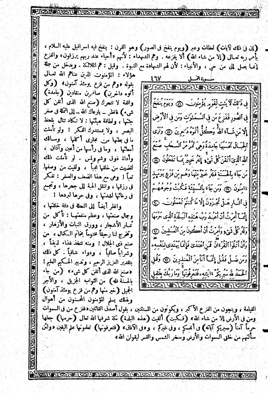 {وَيَوْمَ يُنفَخُ فِي الصُّورِ} وهو القرن: ينفخ فيه إسرافيل عليه السلام، بأمر ربه تعالى {إِلاَّ مَن شَآءَ اللَّهُ} ألا يفزعه. وهم الشهداء: لأنهم {أَحْيَاءٌ عِندَ رَبِّهِمْ يُرْزَقُونَ} والفزع إنما يصل إلى من حيي، والأنبياء: لأن لهم الشهادة مع النبوة. وقيل: هم الملائكة. ويدخل من جملة هؤلاء: المؤمنون الذين عناهم الله تعالى بقوله: {وَهُمْ مِّن فَزَعٍ يَوْمَئِذٍ آمِنُونَ} {وَكُلٌّ أَتَوْهُ دَاخِرِينَ} صاغرين منقادين
