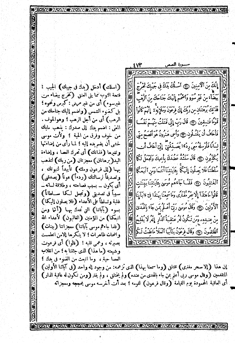 -[474]- {يأَيُّهَا الْملأُ مَا عَلِمْتُ لَكُمْ مِّنْ إِلَهٍ غَيْرِي} وأراد أن يوهم قومه بأنه ذو بطش شديد وقوة، وأن إله موسى في متناول يده، وغير بعيد عليه، وأن في إمكانه الصعود إليه ومقابلته ومقاتلته؛ فقال لوزيره وشريكه في الكفر ومراده من ذلك: صنع لبنات من الفخار؛ مما يتخذ للبناء {فَاجْعَل لِّي} من هذه اللبنات {صَرْحاً} بناء عالياً {لَّعَلِّي أَطَّلِعُ} أصعد وانظر {إِلَى إِلَهِ مُوسَى} وأقف على حاله