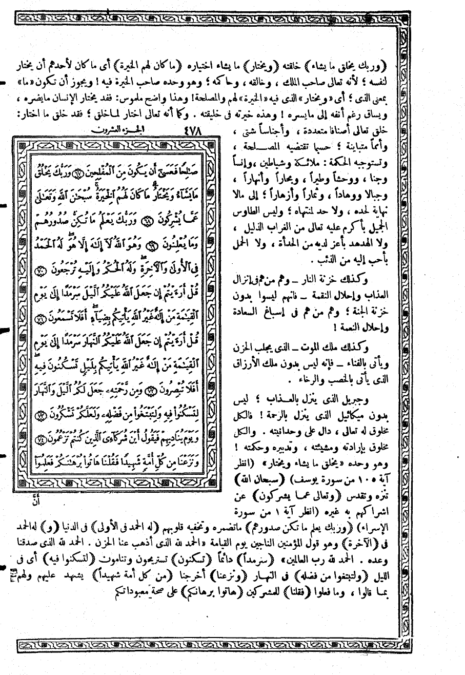{وَرَبُّكَ يَخْلُقُ مَا يَشَآءُ} خلقته {وَيَخْتَارُ} ما يشاء اختياره {مَا كَانَ لَهُمُ الْخِيَرَةُ} أي ما كان لأحدهم أن يختار لنفسه؛ لأنه تعالى صاحب الملك، وخالقه، وحاكمه؛ وهو وحده صاحب الخيرة فيه ويجوز أن تكون «ما» بمعنى الذي؛ أي «ويختار» الذي فيه «الخيرة» لهم والمصلحة وهذا واضح ملموس: فقد يختار الإنسان ما يضره، ويساق رغم أنفه إلى ما يسره وهذه خيرته في خليقته. وكما أنه تعالى اختار لما خلق؛ فقد خلق ما اختار: خلق تعالى أصنافاً متعددة، وأجناساً شتى، وأمماً متباينة؛ حسبما تقتضيه المصلحة، وتستوجبه الحكمة: ملائكة وشياطين، وإنساً وجناً، ووحشاً وطيراً، وبحاراً وأنهاراً، وجبالاً ووهاداً، وثماراً وأزهاراً؛ إلى ما لا نهاية لحده، ولا حد لمنتهاه؛ وليس الطاوس الجميل بأكرم عليه تعالى من الغراب الذليل، ولا الهدهد بأعز لديه من الحدأة، ولا الحمل بأحب إليه من الذئب.