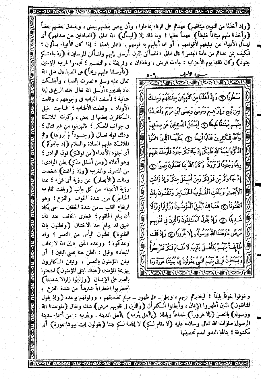 {إِذْ جَآءُوكُمْ} أي جنود الأعداء {مِّن فَوْقِكُمْ} فوق الوادي؛ وهو أعلاه {وَمِنْ أَسْفَلَ مِنكُمْ} بطن الوادي: من المشرق والمغرب {وَإِذْ زَاغَتِ} شخصت ومالت {الأَبْصَرُ} عن رؤية أي شيء؛ عدا رؤية الأعداء من كل جانب {وَبَلَغَتِ الْقُلُوبُ الْحَنَاجِرَ} من شدة الخوف والفزع؛ وهو ارتفاع القلب - من شدة الخفقان - حتى يكاد أن يبلغ الحلقوم؛ فيعتري الخائف عند ذاك ضيق قد يبلغ حد الاختناق {وَتَظُنُّونَ بِاللَّهِ الظُّنُونَاْ} تظنون اليأس من النصر؛ وقد وعدكموه؛ ووعده الحق {إِنَّ اللَّهَ لاَ يُخْلِفُ الْمِيعَادَ} وقيل: الظن هنا بمعنى اليقين؛ أي تيقن المؤمنون بالنصر، وتيقن الكافرون بهزيمة المؤمنين