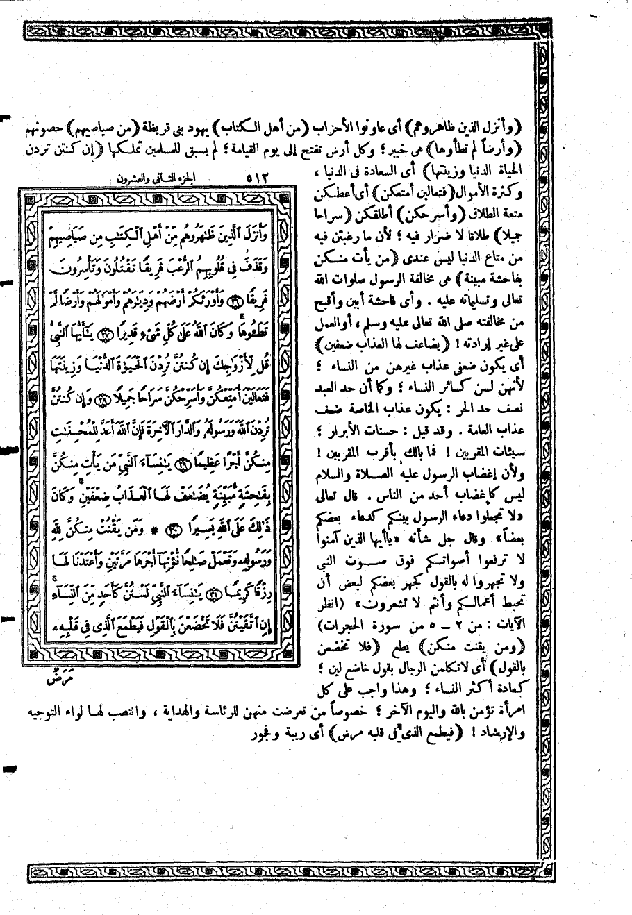 {مَن يَأْتِ مِنكُنَّ بِفَاحِشَةٍ مُّبَيِّنَةٍ} هي مخالفة الرسول صلوات الله تعالى وتسليماته عليه. وأي فاحشة أبين وأقبح من مخالفته، أو العمل على غير إرادته {يُضَاعَفْ لَهَا الْعَذَابُ ضِعْفَيْنِ} أي يكون ضعفي عذاب غيرهن من النساء؛ لأنهن لسن كسائر النساء؛ وكما أن حد العبد نصف حد الحر: يكون عذاب الخاصة ضعف عذاب العامة. وقد قيل: حسنات الأبرار؛ سيئات المقربين فما بالك بأقرب المقربين ولأن إغضاب الرسول عليه الصلاة والسلام ليس كإغضاب أحد من الناس. قال تعالى: {لاَّ تَجْعَلُواْ دُعَآءَ الرَّسُولِ بَيْنَكُمْ كَدُعَآءِ بَعْضِكُمْ بَعْضاً} وقال جل شأنه: {يأَيُّهَا الَّذِينَ آمَنُواْ لاَ تَرْفَعُواْ أَصْوَاتَكُمْ فَوْقَ صَوْتِ النَّبِيِّ وَلاَ تَجْهَرُواْ لَهُ بِالْقَوْلِ كَجَهْرِ بَعْضِكُمْ لِبَعْضٍ أَن تَحْبَطَ أَعْمَالُكُمْ وَأَنتُمْ لاَ تَشْعُرُونَ} (أنظر الآيات: من 2 - 5 من سورة الحجرات)