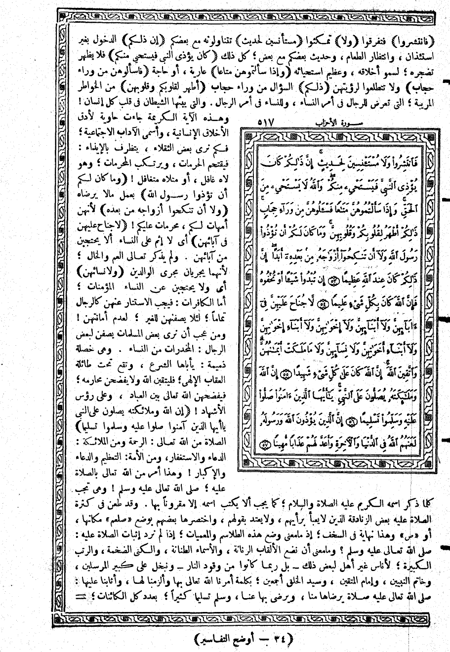 {إِنَّ اللَّهَ وَمَلاَئِكَتَهُ يُصَلُّونَ عَلَى النَّبِيِّ يأَيُّهَا الَّذِينَ آمَنُواْ صَلُّواْ عَلَيْهِ وَسَلِّمُواْ تَسْلِيماً} الصلاة من الله تعالى: الرحمة ومن الملائكة: الدعاء والاستغفار، ومن الأمة: التعظيم والدعاء والإكبار وهذا أمر من الله تعالى بالصلاة عليه وهي تجب كلما ذكر اسمه الكريم عليه الصلاة والسلام؛ كما يجب ألا يكتب اسمه إلا مقروناً بها. وقد طعن في كثرة الصلاة عليه بعض الزنادقة الذين لا يعبأ برأيهم، ولا يعتد بقولهم، واختصرها بعضهم بوضع «صلعم» مكانها، أو «ص» وهذا نهاية في السخف؛ إذ ما معنى وضع هذه الطلاسم والمعميات؛ إذا لم نرد إثبات الصلاة عليه وما معنى أن نضع الألقاب الرنانة، والأسماء الطنانة، والكنى الضخمة، والرتب الكبيرة؛ لأناس غير أهل لبعض ذلك - بل ربما كانوا من وقود النار - ونبخل على كبير المرسلين، وخاتم النبيين، وإمام المتقين، وسيد الخلق أجمعين؛ بكلمة أمرنا الله تعالى بها وألزمنا لها، وأثابنا عليها صلاة يرضاها منا، ويرضى بها عنا، وسلم تسليماً كثيراً؛ بعدد كل الكائنات؛