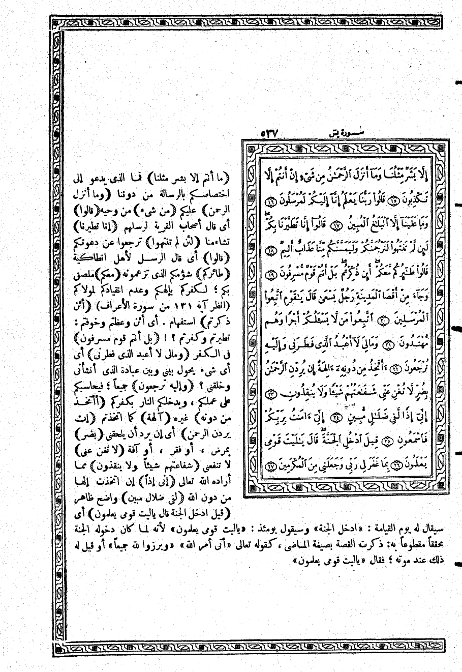 {قِيلَ ادْخُلِ الْجَنَّةَ قَالَ يلَيْتَ قَوْمِي يَعْلَمُونَ} أي سيقال له يوم القيامة: «ادخل الجنة» وسيقول يومئذٍ: «يا ليت قومي يعلمون» لأنه لما كان دخوله الجنة محققاً مقطوعاً به: ذكرت القصة بصيغة الماضي، كقوله تعالى: «أتى أمرالله» «وبرزوا لله جميعاً» أو قيل له ذلك عند موته؛ فقال: «يا ليت قومي يعلمون»