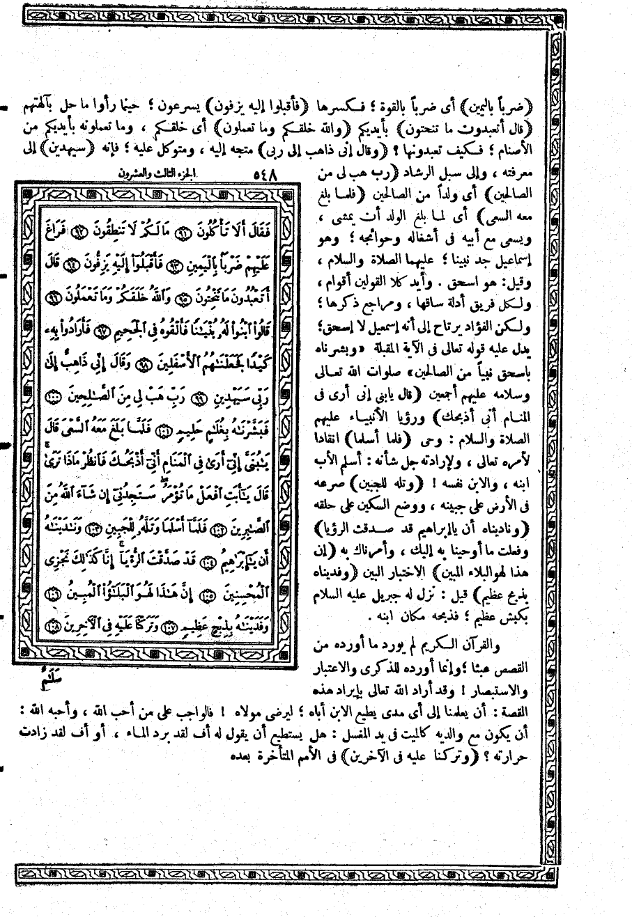 والقرآن الكريم لم يورد ما أورده من القصص عبثاً؛ وإنما أورده للذكرى والاعتبار والاستبصار وقد أراد الله تعالى بإيراد هذه القصة: أن يعلمنا إلى أي مدى يطيع الابن أباه؛ ليرضي مولاه فالواجب على من أحبالله، وأحبهالله: أن يكون مع والديه كالميت في يد المغسل: هل يستطيع أن يقول له أف لقد برد الماء، أو أف لقد زادت حرارته؟