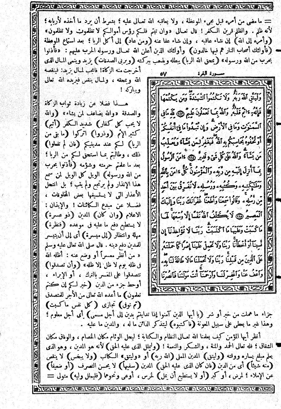 -[58]- أمره؛ كوالد، أو ولد، أو وصي، أو قيم {أَن تَضِلَّ} أي خشية أن تنسى {إْحْدَاهُمَا} إحدى المرأتين {فَتُذَكِّرَ إِحْدَاهُمَا الأُخْرَى} بما نسيته {وَلاَ يَأْبَ} لا يمتنع {الشُّهَدَآءُ إِذَا مَا دُعُواْ} للشهادة {وَلاَ تَسْأَمُواْ} لا تملوا {أَن تَكْتُبُوهُ} أي الدين {صَغِيراً} كان {أَو كَبِيراً إِلَى أَجَلِهِ} مدته، وموعد أدائه {ذَلِكُمْ أَقْسَطُ} أعدل {وَأَدْنَى أَلاَّ تَرْتَابُواْ} أقرب ألا تشكوا في مقدار الدين وأجله {إِلاَّ أَن تَكُونَ تِجَارَةً حَاضِرَةً تُدِيرُونَهَا بَيْنَكُمْ} بالتسليم وتسلم الثمن {فَلَيْسَ عَلَيْكُمْ جُنَاحٌ أَلاَّ تَكْتُبُوهَا} إذ لا فائدة من الكتابة؛ فقد تم تسلم البضاعة، وتم دفع ثمنها {وَلاَ يُضَآرَّ كَاتِبٌ} بسبب كتابته {وَلاَ شَهِيدٌ} بسبب شهادته؛ ما داما قد قاما بما أمر الله به من العدل والاستقامة {وَإِن تَفْعَلُواْ} ما نهيتم عنه، وألحقتم الضرر بمن كتب، أو شهد {فَإِنَّهُ فُسُوقٌ بِكُمْ} خروج عن الطاعة {وَاتَّقُواْ اللَّهَ} خافوه، واخشوا عقابه {وَيُعَلِّمُكُمُ اللَّهُ} ما لم تكونوا تعلمون؛ بسبب خشيتكم وتقواكم