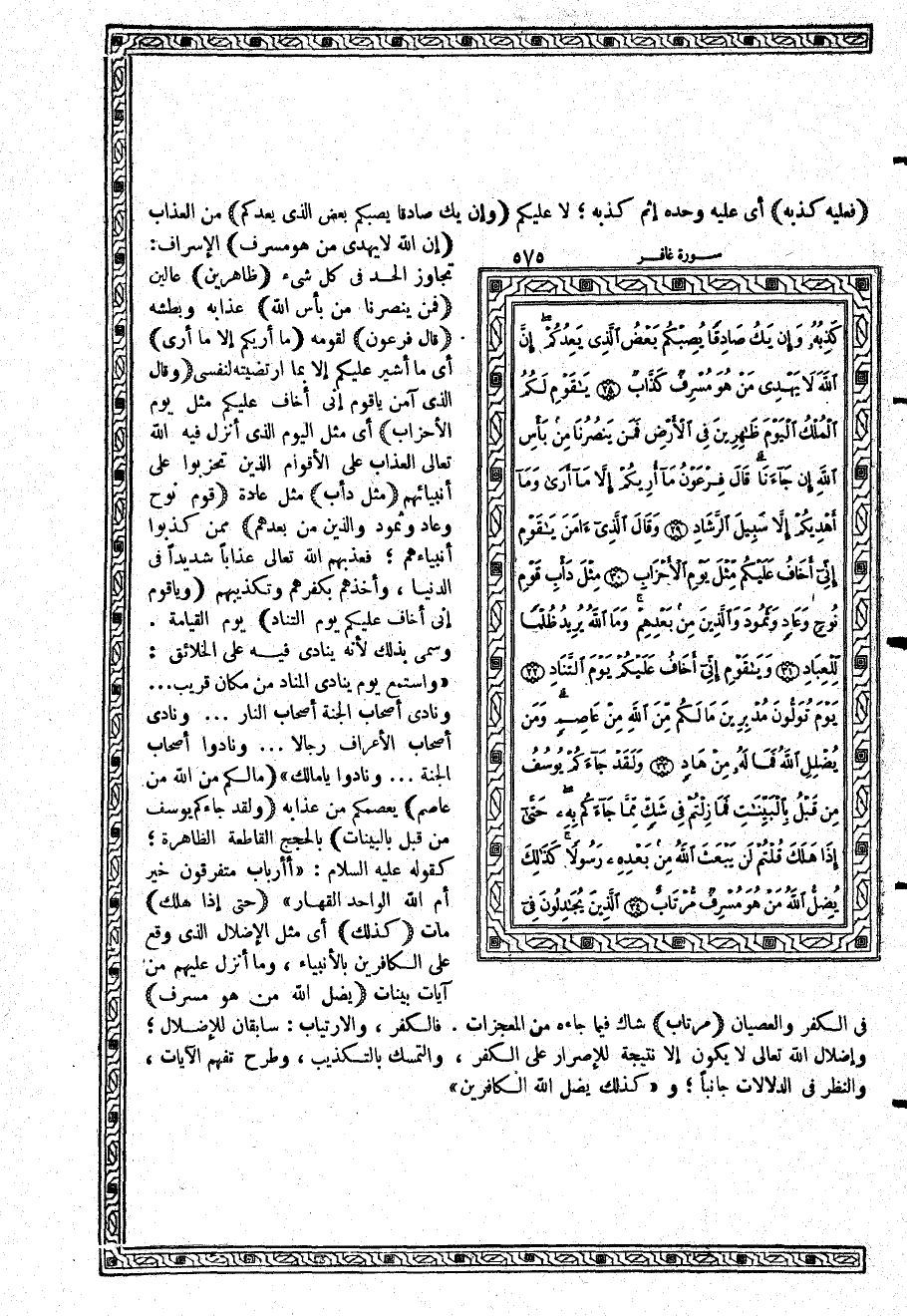 {وَلَقَدْ جَآءَكُمْ يُوسُفُ مِن قَبْلُ بِالْبَيِّنَاتِ} بالحجج القاطعة الظاهرة؛ كقوله عليه السلام: {مُّتَّفَرِّقُونَ خَيْرٌ أَمِ اللَّهُ الْوَاحِدُ الْقَهَّارُ * مَا تَعْبُدُونَ مِن دُونِهِ} {حَتَّى إِذَا هَلَكَ} مات {كَذَلِكَ} أي مثل الإضلال الذي وقع على الكافرين بالأنبياء، وما أنزل عليهم من آيات بينات {يُضِلُّ اللَّهُ مَنْ هُوَ مُسْرِفٌ} في الكفر والعصيان {مُّرْتَابٌ} شاك فيما جاءه من المعجزات. فالكفر، والارتياب: سابقان للإضلال؛ وإضلال الله تعالى لا يكون إلا نتيجة للإصرار على الكفر، والتمسك بالتكذيب، وطرح تفهم الآيات، والنظر في الدلالات جانباً؛ و {كَذَلِكَ يُضِلُّ اللَّهُ الْكَافِرِينَ}.