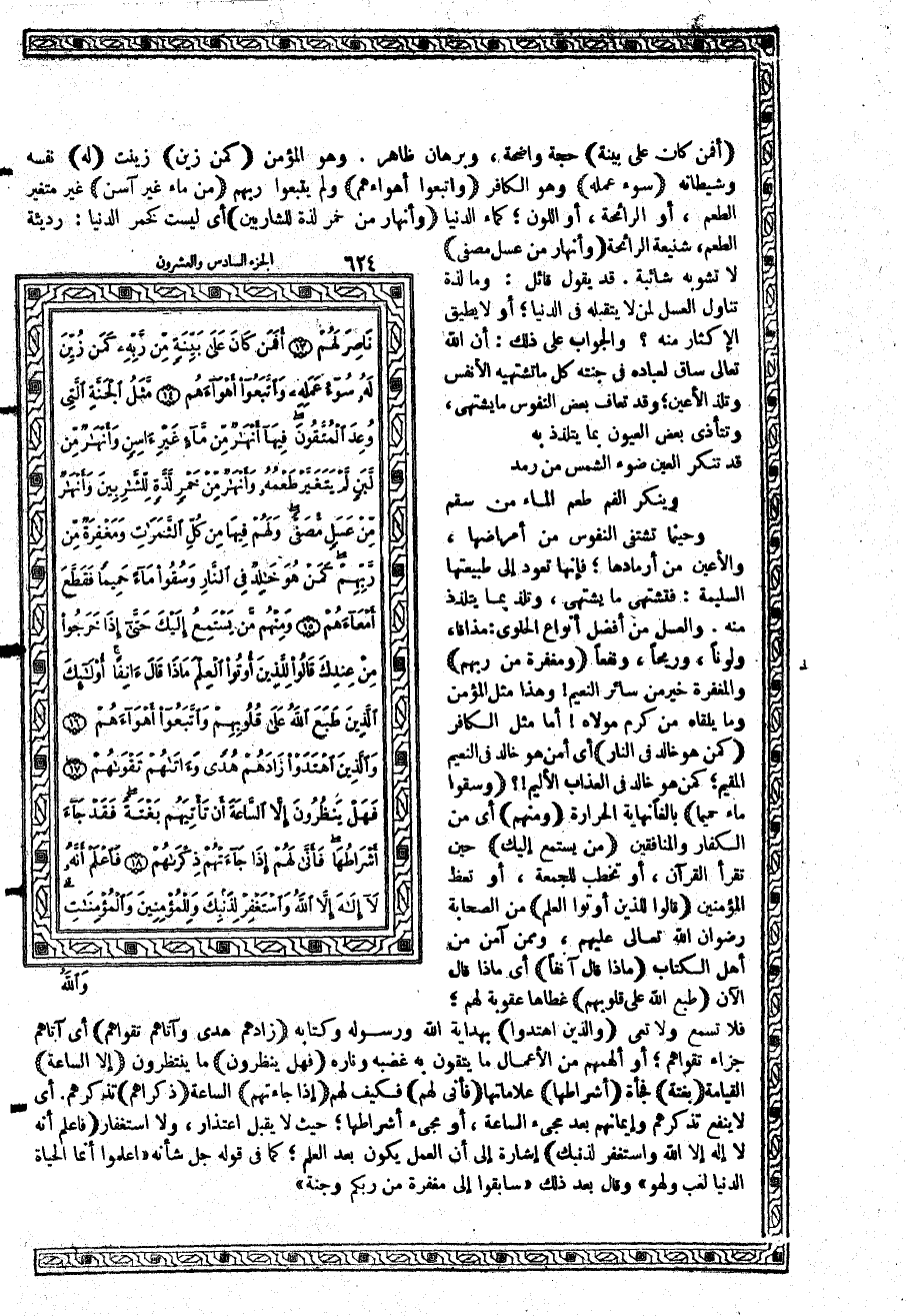 وحينما تشتفي النفوس من أمراضها، والأعين من أرمادها؛ فإنها تعود إلى طبيعتها السليمة: فتشتهي ما يشتهى، وتلذ بما يتلذذ منه. والعسل من أفضل أنواع الحلوى: مذاقاً، ولوناً، وريحاً، ونفعاً {وَمَغْفِرَةٌ مِّن رَّبِّهِمْ} والمغفرة خير من سائر النعيم وهذا مثل المؤمن وما يلقاه من كرم مولاه أما مثل الكافر {كَمَنْ هُوَ خَالِدٌ فِي النَّارِ} أي أمن هو خالد في النعيم المقيم؛ كمن هو خالد في العذاب الأليم؟ {وَسُقُواْ مَآءً حَمِيماً} بالغاً نهاية الحرارة