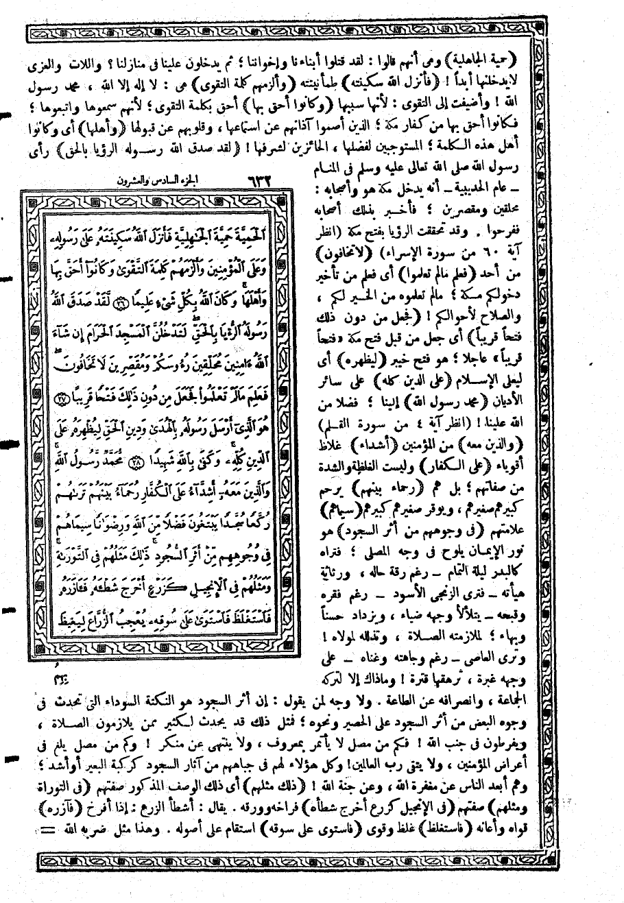 {مُّحَمَّدٌ رَّسُولُ اللَّهِ} إلينا؛ فضلاً من الله علينا (انظر آية 4 من سورة القلم) {وَالَّذِينَ مَعَهُ} من المؤمنين {أَشِدَّآءُ} غلاظ أقوياء {عَلَى الْكُفَّارِ} وليست الغلظة والشدة من صفاتهم؛ بل هم {رُحَمَآءُ بَيْنَهُمْ} يرحم كبيرهم صغيرهم، ويوقر صغيرهم كبيرهم {سِيمَاهُمْ} علامتهم {فِي وُجُوهِهِمْ مِّنْ أَثَرِ السُّجُودِ} هو نور الإيمان يلوح في وجه المصلي؛ فتراه كالبدر ليلة التمام - رغم رقة حاله، ورثاثة هيأته - فترى الزنجي الأسود - رغم فقره وقبحه - يتلألأ وجهه ضياء، ويزداد حسناً وبهاء؛ لملازمته الصلاة، وتذلله لمولاه وترى العاصي - رغم وجاهته وغناه - على وجهه غبرة، ترهقها قترة وما ذاك إلا لتركه الجماعة، وانصرافه عن الطاعة. ولا وجه لمن يقول: إن أثر السجود هو النكتة السوداء التي تحدث في وجوه البعض من أثر السجود على الحصير ونحوه؛ فمثل ذلك قد يحدث لكثير ممن يلازمون الصلاة، ويفرطون في جنب الله فكم من مصلٍ لا يأتمر بمعروف، ولا ينتهي عن منكر وكم من مصل يلغ في أعراض المؤمنين، ولا يتقي رب العالمين وكل هؤلاء لهم في جباههم من آثار السجود كركبة البعير أو أشد؛ وهم أبعد الناس عن مغفرةالله، وعن جنة الله {ذَلِكَ مَثَلُهُمْ} أي ذلك الوصف المذكور صفتهم {فِي التَّوْرَاةِ وَمَثَلُهُمْ} صفتهم {فِي الإِنجِيلِ كَزَرْعٍ أَخْرَجَ شَطْأَهُ} فراخه وورقه. يقال: أشطأ الزرع: إذا أفرخ {فَآزَرَهُ} قواه وأعانه {فَاسْتَغْلَظَ} غلظ وقوى {فَاسْتَوَى عَلَى سُوقِهِ} استقام على أصوله. وهذا مثل ضربه الله