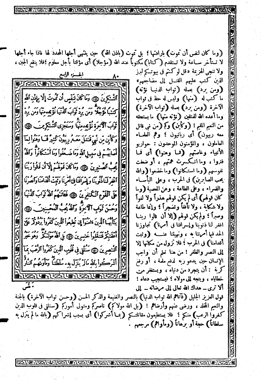 {وَمَا كَانَ لِنَفْسٍ أَنْ تَمُوتَ} بإرادتها؛ بل تموت {بِإِذُنِ اللَّهِ} حين ينتهي أجلها المحدد لها فإذا جاء أجلها لا تستأخر ساعة ولا تستقدم {كِتَاباً} مكتوباً عند الله {مُّؤَجَّلاً} أي مؤقتاً بأجل معلوم؛ فلا ينفع الجبن، ولا تنجى الهزيمة {قُل لَّوْ كُنتُمْ فِي بُيُوتِكُمْ لَبَرَزَ الَّذِينَ كُتِبَ عَلَيْهِمُ الْقَتْلُ إِلَى مَضَاجِعِهِمْ} {وَمَن يُرِدِ}