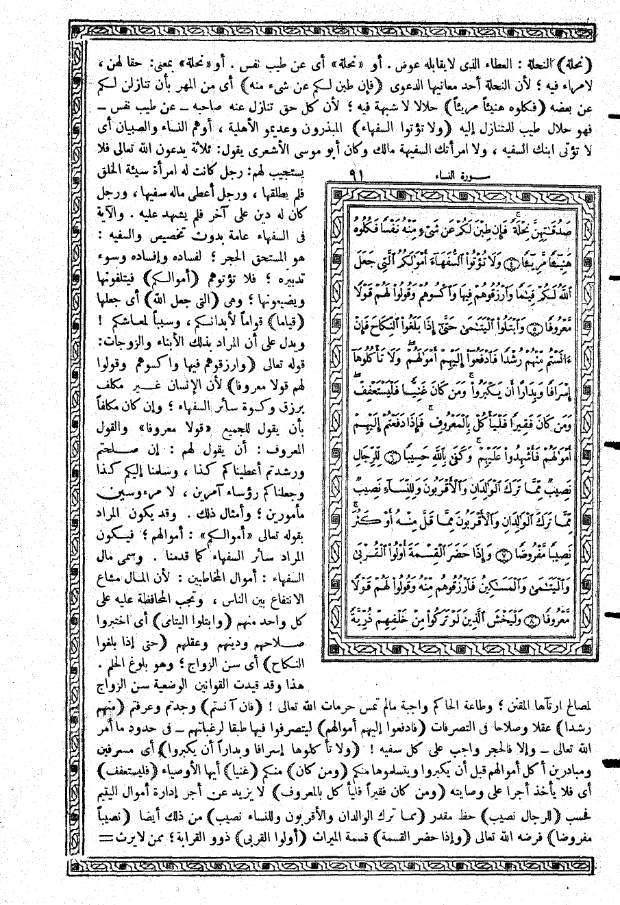 -[92]- حضر {وَالْيَتَامَى وَالْمَسَاكِينُ فَارْزُقُوهُمْ مِّنْهُ} من الميراث بقدر ما تطيب به نفوسكم {وَقُولُواْ لَهُمْ قَوْلاً مَّعْرُوفاً} ترضية لنفوسهم، وتطييباً لقلوبهم. وهي وصية لأولي القربى: الذين يحزنون ولا يرثون. قال تعالى: {إِن تَرَكَ خَيْراً الْوَصِيَّةُ لِلْوَالِدَيْنِ وَالأَقْرَبِينَ بِالْمَعْرُوفِ} وقد ذهب بعضهم إلى نسخ ذلك الحكم؛ وهو محكم وليس بمنسوخ؛ وقد أجمع على ذلك الصدر الأول من الإسلام: فقد روي عن يحيىبن يعمر رضي الله تعالى عنه: ثلاث آيات محكمات مدنيات؛ تركهن الناس: هذه الآية، وآية الاستئذان {يأَيُّهَا الَّذِينَ آمَنُواْ لِيَسْتَأْذِنكُمُ الَّذِينَ مَلَكَتْ أَيْمَانُكُمْ} وآية التعارف {يأَيُّهَا النَّاسُ إِنَّا خَلَقْنَاكُم مِّن ذَكَرٍ وَأُنْثَى وَجَعَلْنَاكُمْ شُعُوباً وَقَبَآئِلَ لِتَعَارَفُواْ} وقيل: على الوارث الإعطاء، وعلى المعطى له قول المعروف