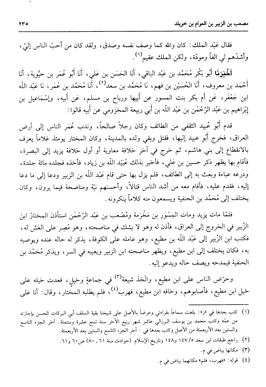 (2) راجع طبقات ابن سعد 5 / 147 و 148 وتاريخ الاسلام (حوادث سنة 61 - 80) ص 60 و 61