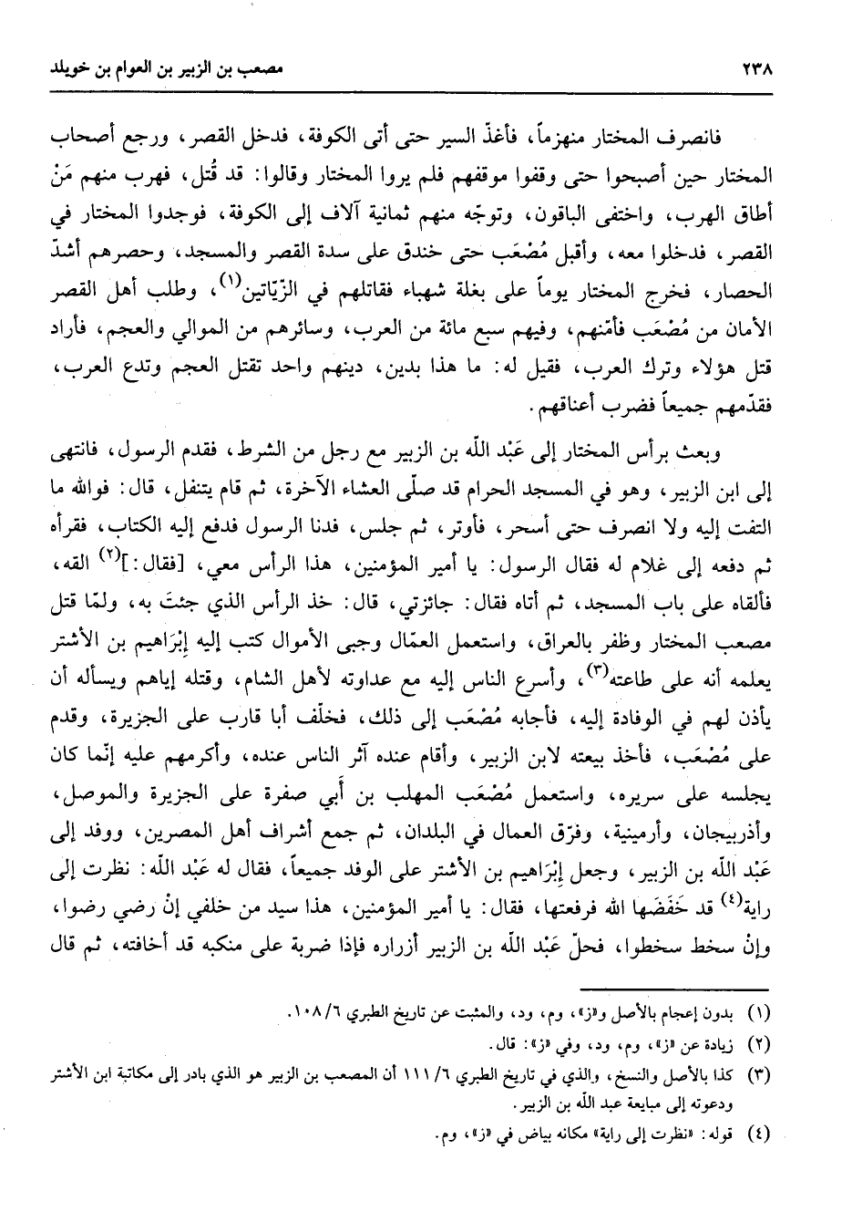 (3) كذا بالاصل والنسخ والذي في تاريخ الطبري 6 / 111 أن المصعب بن الزبير هو الذي بادر إلى مكاتبة ابن الاشتر ودعوته إلى مبايعة عبد الله بن الزبير