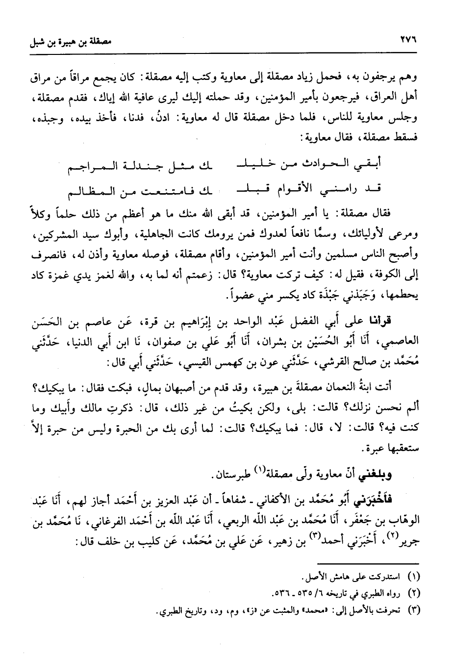 (2) رواه الطبري في تاريخه 6 / 535 - 536