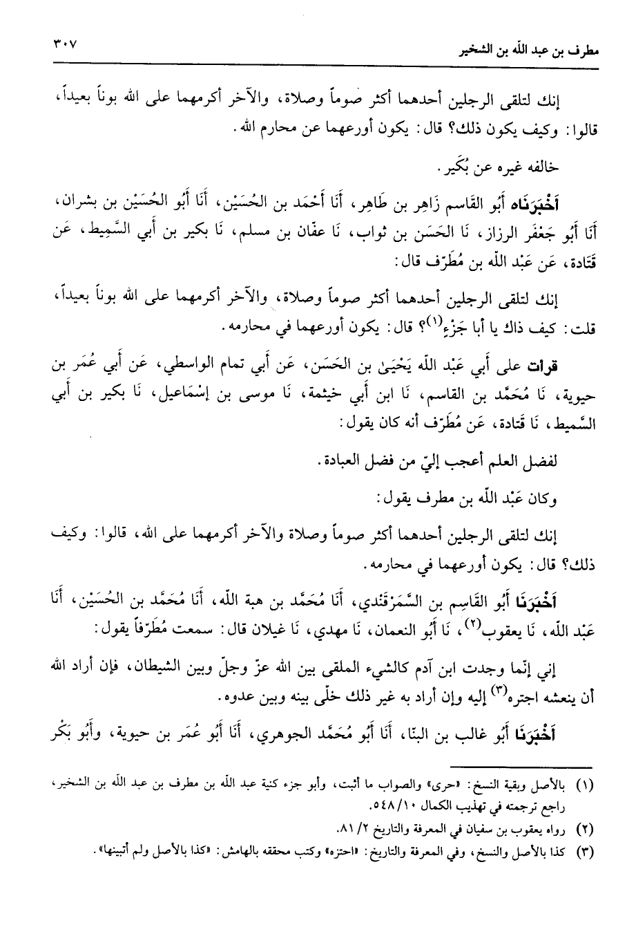(1) بالاصل وبقية النسخ: " حرى " والصواب ما أثبت وأبو جزء كنية عبد الله بن مطرف بن عبد الله بن الشخير راجع ترجمته في تهذيب الكمال 10 / 548