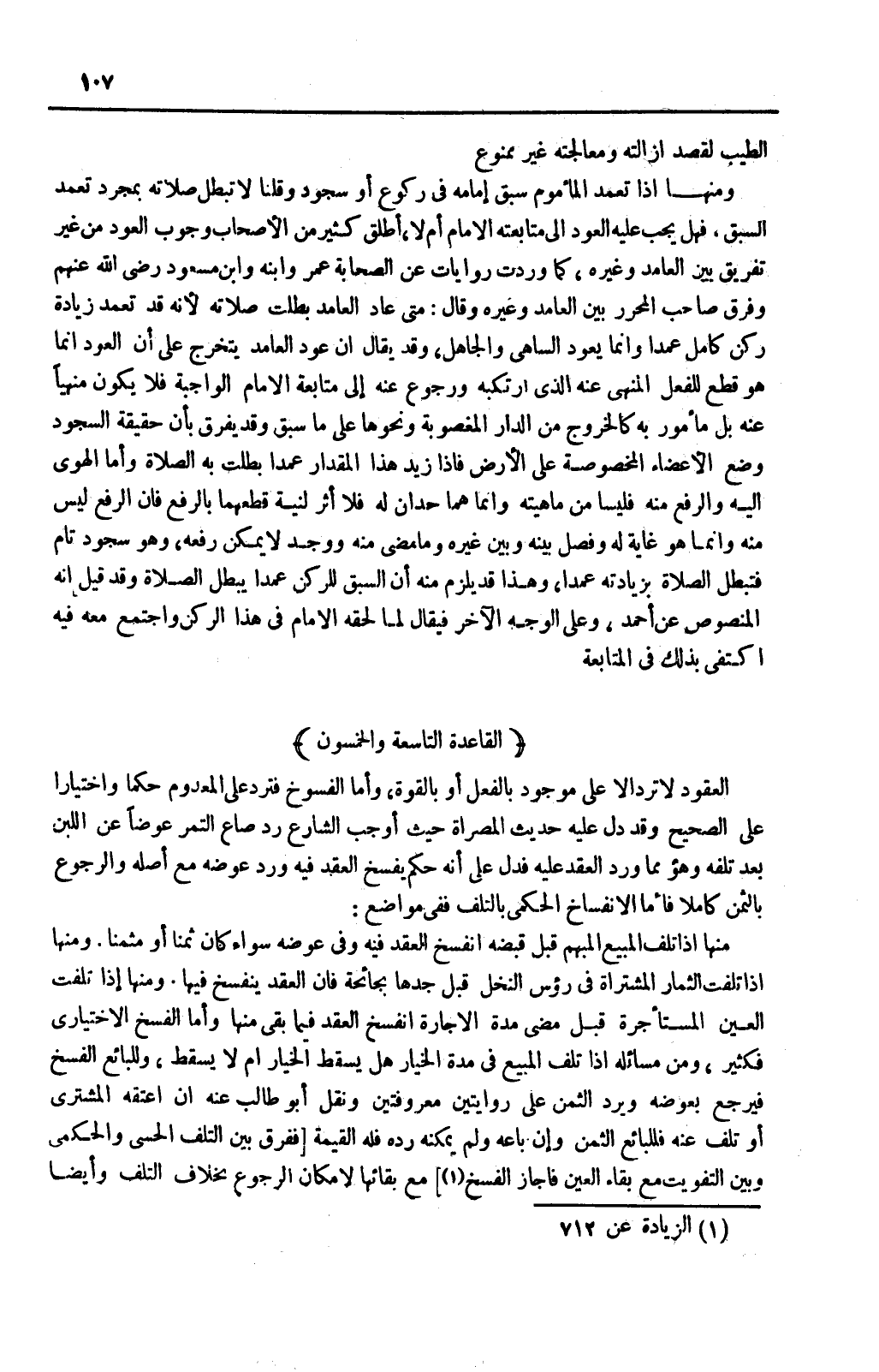 (الْقَاعِدَةُ التَّاسِعَة وَالْخَمْسُونَ) : الْعُقُودُ لَا تُرَدُّ إلَّا عَلَى مَوْجُودٍ بِالْفِعْلِ أَوْ بِالْقُوَّةِ، وَأَمَّا الْفُسُوخُ فَتُرَدُّ عَلَى الْمَعْدُومِ حُكْمًا وَاخْتِيَارًا عَلَى الصَّحِيحِ وَقَدْ دَلَّ عَلَيْهِ حَدِيثُ الْمُصَرَّاةِ حَيْثُ أَوْجَبَ الشَّارِعُ رَدَّ صَاعِ التَّمْرِ عِوَضًا عَنْ اللَّبَنِ بَعْدَ تَلَفِهِ وَهُوَ مِمَّا وَرَدَ الْعَقْدُ عَلَيْهِ فَدَلَّ عَلَى أَنَّهُ حَكَمَ بِفَسْخِ الْعَقْدِ فِيهِ وَرَدِّ عِوَضِهِ مَعَ أَصْلِهِ وَالرُّجُوعِ بِالثَّمَنِ كَامِلًا