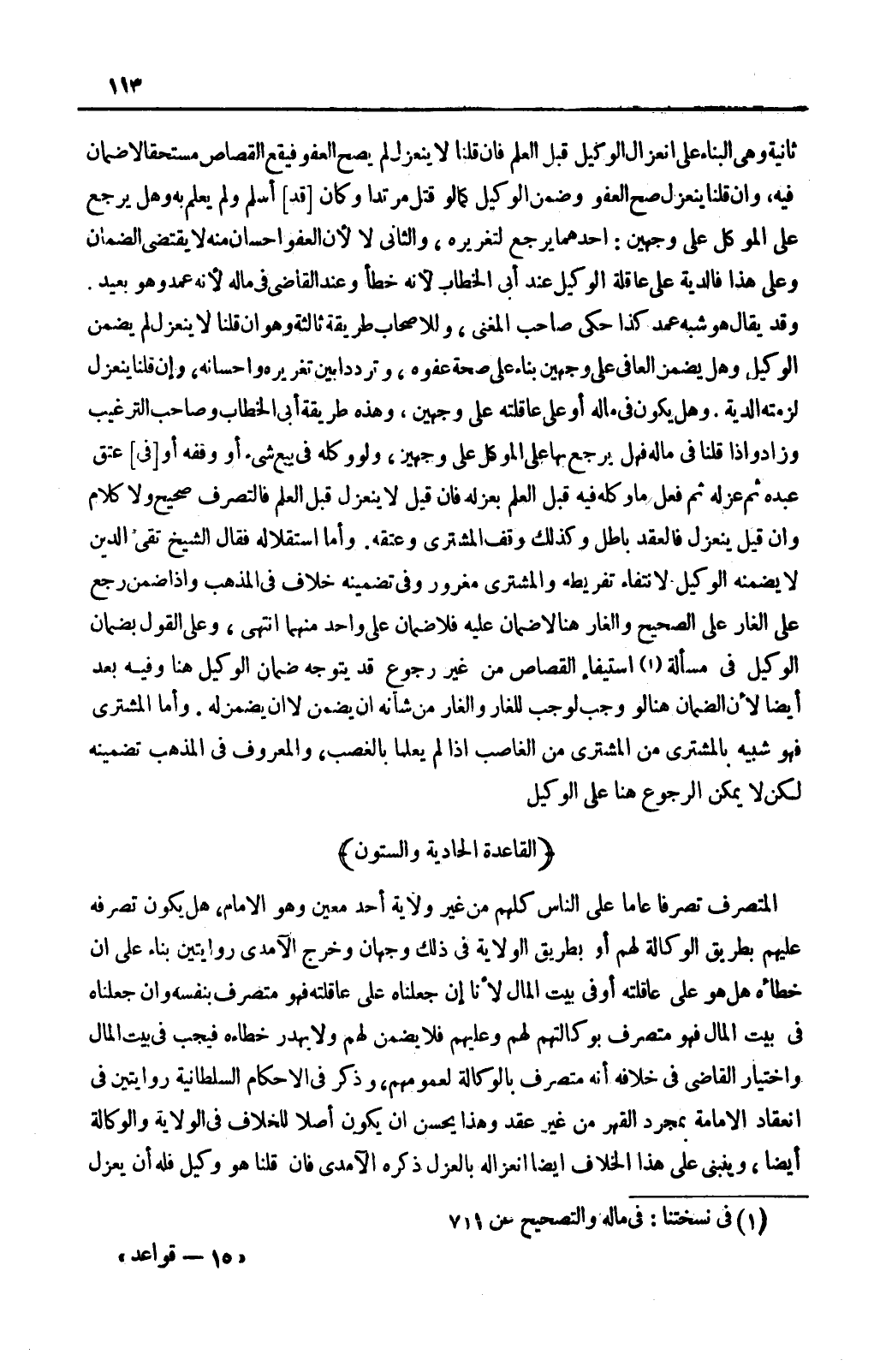 [الْقَاعِدَةُ الْحَادِيَة وَالسِّتُّونَ الْمُتَصَرِّفُ تَصَرُّفًا عَامًّا عَلَى النَّاس كُلِّهِمْ مِنْ غَيْرِ وِلَايَةِ أَحَدٍ مُعَيَّنٍ وَهُوَ الْإِمَامُ]