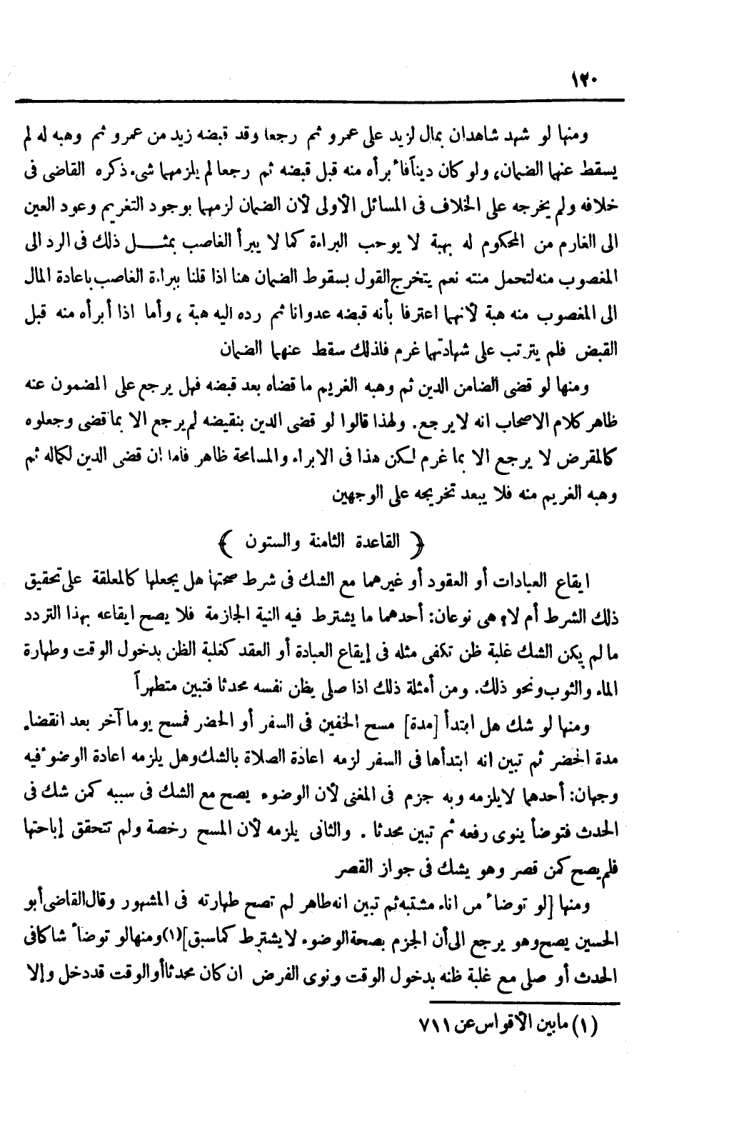 (الْقَاعِدَةُ الثَّامِنَةُ وَالسِّتُّونَ) : إيقَاعُ الْعِبَادَاتِ أَوْ الْعُقُودِ أَوْ غَيْرِهِمَا مَعَ الشَّكِّ فِي شَرْطِ صِحَّتِهَا هَلْ يَجْعَلُهَا كَالْمُعَلَّقَةِ عَلَى تَحْقِيقِ ذَلِكَ الشَّرْطِ أَمْ لَا؟ هِيَ نَوْعَانِ: