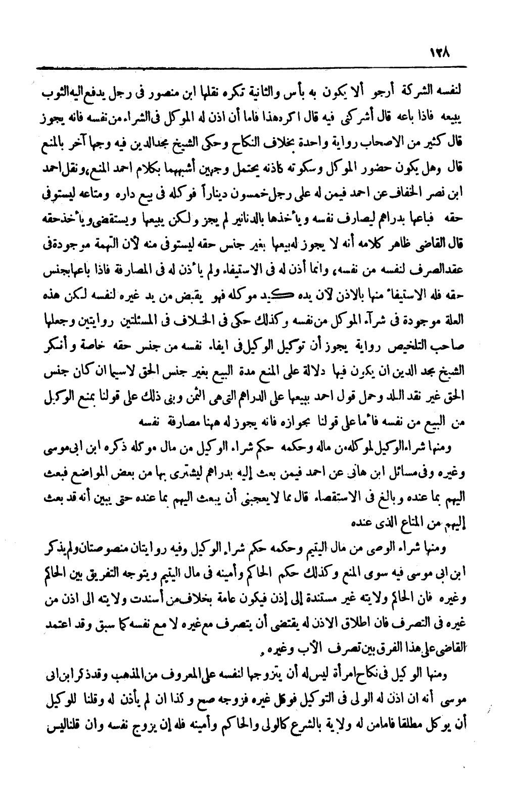 وَمِنْهَا الْوَكِيلُ فِي نِكَاحِ امْرَأَةٍ لَيْسَ لَهُ أَنْ يَتَزَوَّجَهَا لِنَفْسِهِ عَلَى الْمَعْرُوفِ مِنْ الْمَذْهَبِ وَقَدْ ذَكَرَ ابْنُ أَبِي مُوسَى أَنَّهُ إنْ أَذِنَ لَهُ الْوَلِيُّ فِي التَّوْكِيلِ فَوَكَّلَ غَيْرَهُ فَزَوَّجَهُ صَحَّ وَكَذَا إنْ لَمْ يَأْذَنْ لَهُ وَقُلْنَا لِلْوَكِيلِ أَنْ يُوَكِّلَ مُطْلَقًا فَأَمَّا مَنْ لَهُ وِلَايَةٌ بِالشَّرْعِ كَالْوَلِيِّ وَالْحَاكِمِ وَأَمِينِهِ فَلَهُ أَنْ يُزَوِّجَ نَفْسَهُ وَإِنْ قُلْنَا لَيْسَ