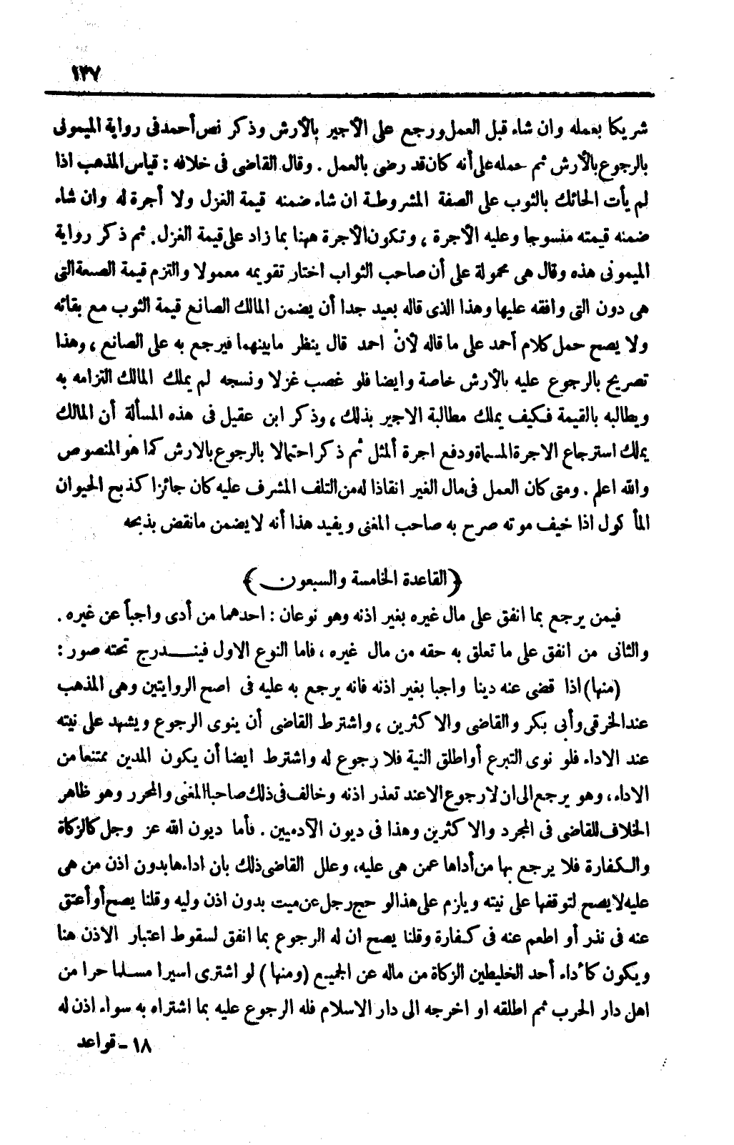 (الْقَاعِدَةُ الْخَامِسَة وَالسَّبْعُونَ) : فِيمَنْ يَرْجِعُ بِمَا أَنْفَقَ عَلَى مَالِ غَيْرِهِ بِغَيْرِ إذْنِهِ وَهُوَ نَوْعَانِ: