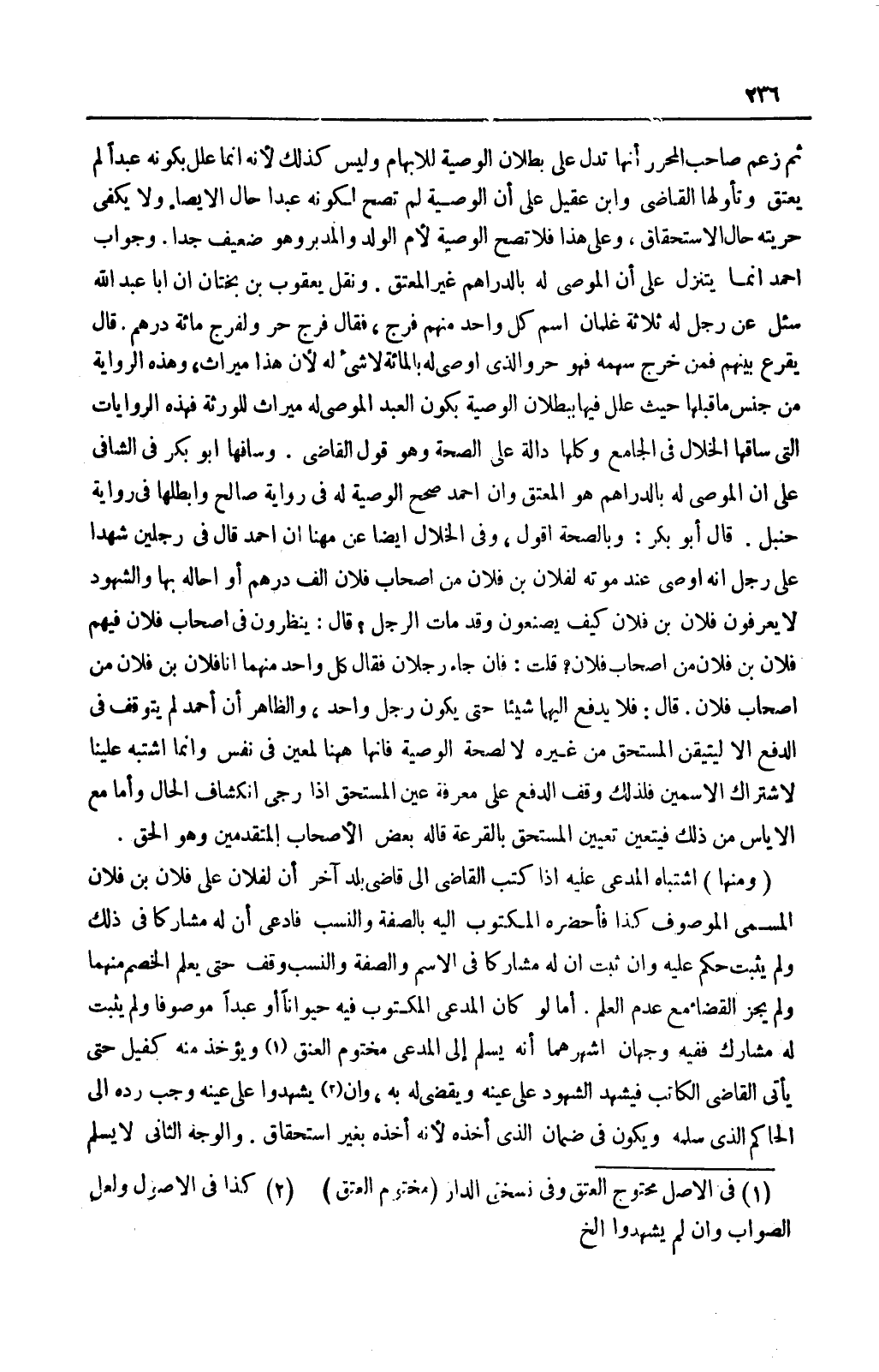 وَجَوَابُ أَحْمَدَ إنَّمَا يَتَنَزَّلُ عَلَى أَنَّ الْمُوصَى لَهُ بِالدَّرَاهِمِ غَيْرُ الْمُعْتِقِ. وَنَقَلَ يَعْقُوبُ بْنُ بُخْتَانَ أَنَّ أَبَا عَبْدِ اللَّهِ سَأَلَ عَنْ رَجُلٍ لَهُ ثَلَاثَةُ غِلْمَانٍ اسْمُ كُلِّ وَاحِدٍ مِنْهُمْ فَرَجٌ، فَقَالَ: فَرَجٌ حُرٌّ وَلِفَرَجٍ مِائَةُ دِرْهَمٍ.