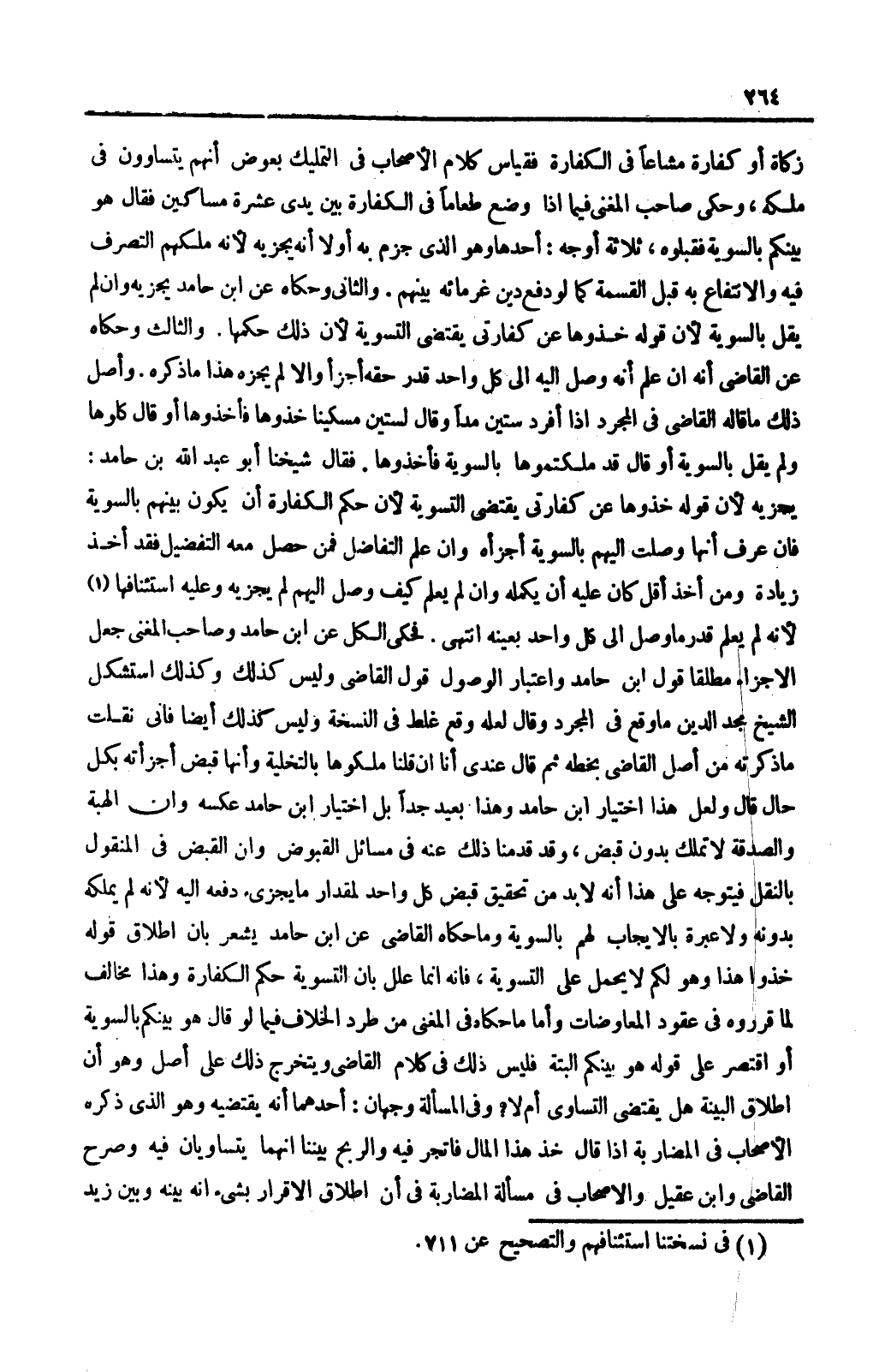 فَحَكَى الْكُلَّ عَنْ ابْنِ حَامِدٍ وَصَاحِبِ الْمُغْنِي جَعَلَ الْإِجْزَاءَ مُطْلَقًا قَوْلُ ابْنِ حَامِدٍ وَاعْتِبَارُ الْوُصُولِ قَوْلُ الْقَاضِي وَلَيْسَ كَذَلِكَ وَكَذَلِكَ اسْتَشْكَلَ الشَّيْخُ مَجْدُ الدِّينِ مَا وَقَعَ فِي الْمُجَرَّدِ وَقَالَ لَعَلَّهُ وَقَعَ غَلَطٌ فِي النُّسْخَةِ وَلَيْسَ كَذَلِكَ أَيْضًا فَإِنِّي نَقَلْتُ مَا ذَكَرْتُهُ. قَالَ: وَلَعَلَّ مِنْ أَصْلِ الْقَاضِي بِخَطِّهِ. ثُمَّ قَالَ: عِنْدِي أَنَا إنْ قُلْنَا مَلَكُوهَا بِالتَّخْلِيَةِ وَأَنَّهَا قَبْضٌ أَجْزَأَتْهُ بِكُلِّ حَالٍ. قَالَ: وَلَعَلَّ هَذَا اخْتِيَارُ ابْنِ حَامِدٍ وَهَذَا بَعِيدٌ جِدًّا بَلْ اخْتِيَارُ ابْنِ حَامِدٍ عَكْسُهُ وَإِنَّ الْهِبَةَ وَالصَّدَقَةَ لَا تُمْلَكُ بِدُونِ قَبْضٍ، وَقَدْ قَدَّمْنَا ذَلِكَ عَنْهُ فِي مَسَائِلِ الْقُبُوضِ وَإِنَّ الْقَبْضَ فِي الْمَنْقُولِ بِالنَّقْلِ فَيَتَوَجَّهُ عَلَى هَذَا أَنَّهُ لَا بُدّ مِنْ تَحْقِيقِ قَبْضِ كُلِّ وَاحِدٍ لِمِقْدَارِ مَا يُجْزِئُ دَفْعُهُ إلَيْهِ ; لِأَنَّهُ لَمْ يَمْلِكْهُ بِدُونِهِ وَلَا عِبْرَةَ بِالْإِيجَابِ لَهُمْ بِالسَّوِيَّةِ وَمَا حَكَاهُ الْقَاضِي عَنْ ابْنِ حَامِدٍ يُشْعِرُ بِأَنَّ إطْلَاقَ قَوْلِهِ خُذُوا هَذَا وَهُوَ لَكُمْ لَا يُحْمَلُ عَلَى التَّسْوِيَةِ، فَإِنَّهُ إنَّمَا عَلَّلَ بِأَنَّ التَّسْوِيَةَ حُكْمُ الْكَفَّارَةِ وَهَذَا مُخَالِفٌ لِمَا قَرَّرُوهُ فِي عُقُودِ الْمُعَاوَضَاتِ.