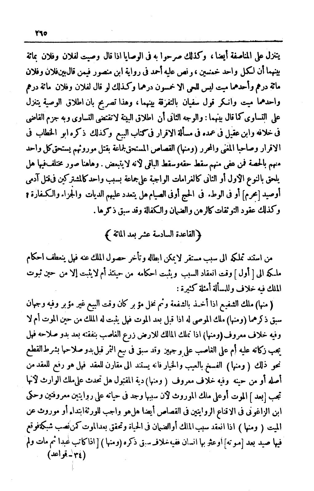 (وَمِنْهَا) مِلْكُ الْمُوصَى لَهُ إذَا قَبِلَ بَعْدَ الْمَوْتِ فَهَلْ يَثْبُتُ لَهُ الْمِلْكُ مِنْ حِينِ الْمَوْتِ أَمْ لَا وَفِيهِ خِلَافٌ مَعْرُوفٌ.