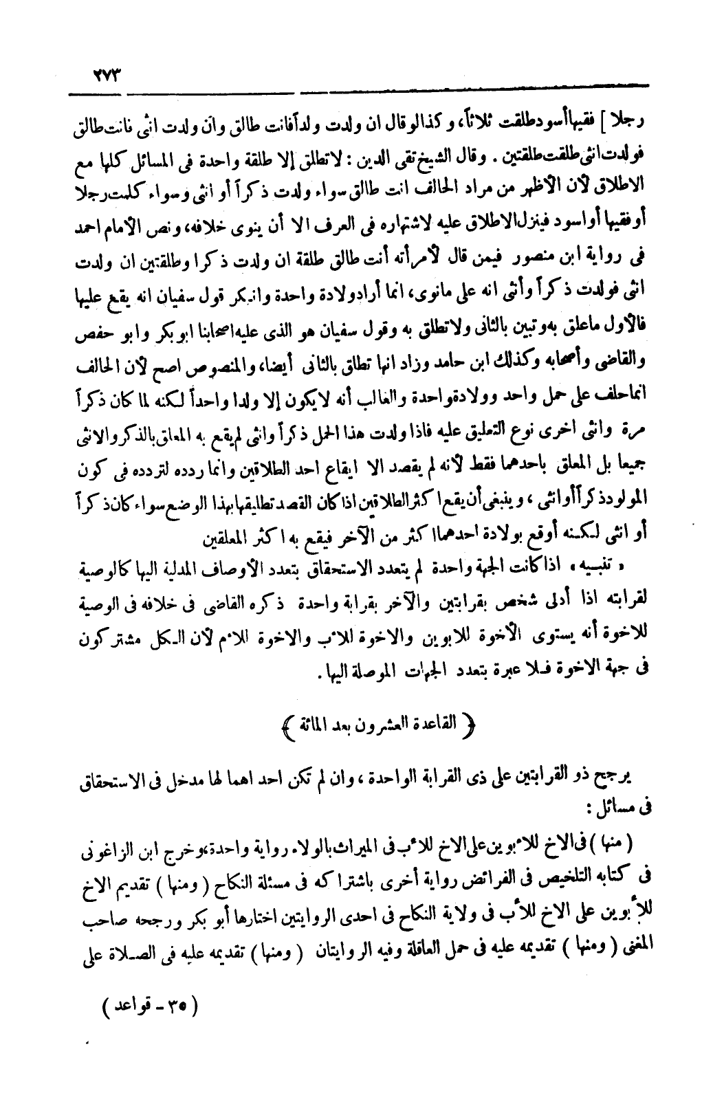 [الْقَاعِدَةُ الْعِشْرُونَ بَعْدَ الْمِائَةِ يُرَجَّحُ ذُو الْقَرَابَتَيْنِ عَلَى ذِي الْقَرَابَةِ الْوَاحِدَة]