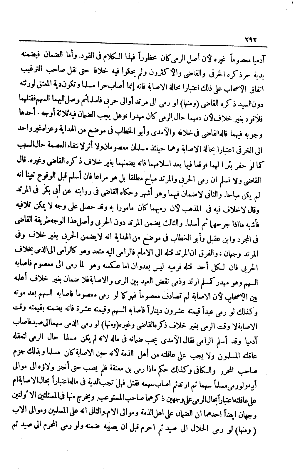 وَمِنْهَا: لَوْ رَمَى الذِّمِّيُّ سَهْمًا إلَى صَيْدٍ فَأَصَابَ آدَمِيًّا وَقَدْ أَسْلَمَ الرَّامِي، فَقَالَ الْآمِدِيُّ يَجِبُ ضَمَانُهُ فِي مَالِهِ ; لِأَنَّهُ لَمْ يَكُنْ مُسْلِمًا حَالَ الرَّمْيِ لِتَعْقِلَهُ عَاقِلَتُهُ الْمُسْلِمُونَ، وَلَا يَجِبُ عَلَى عَاقِلَتِهِ مِنْ أَهْلِ الذِّمَّةِ ; لِأَنَّهُ حِينَ الْإِصَابَةِ كَانَ مُسْلِمًا وَبِذَلِكَ جَزَمَ صَاحِبُ الْمُحَرَّرِ وَالْكَافِي، وَكَذَلِكَ حَكَمَ مَا إذَا رَمَى ابْنَ مُعْتَقَةٍ فَلَمْ يُصِبْ حَتَّى أُنْجِزَ وَلَاؤُهُ إلَى مَوَالِي أَبِيهِ، وَلَوْ رَمَى مُسْلِمًا سَهْمًا ثُمَّ ارْتَدَّ ثُمَّ أَصَابَ سَهْمُهُ فَقَتَلَ فَهَلْ تَجِبُ الدِّيَةُ فِي مَالِهِ اعْتِبَارًا بِحَالِ الْإِصَابَةِ أَمْ عَلَى عَاقِلَتِهِ اعْتِبَارًا بِحَالِ الرَّمْيِ عَلَى وَجْهَيْنِ ذَكَرَهُمَا صَاحِبُ الْمُسْتَوْعِبِ.