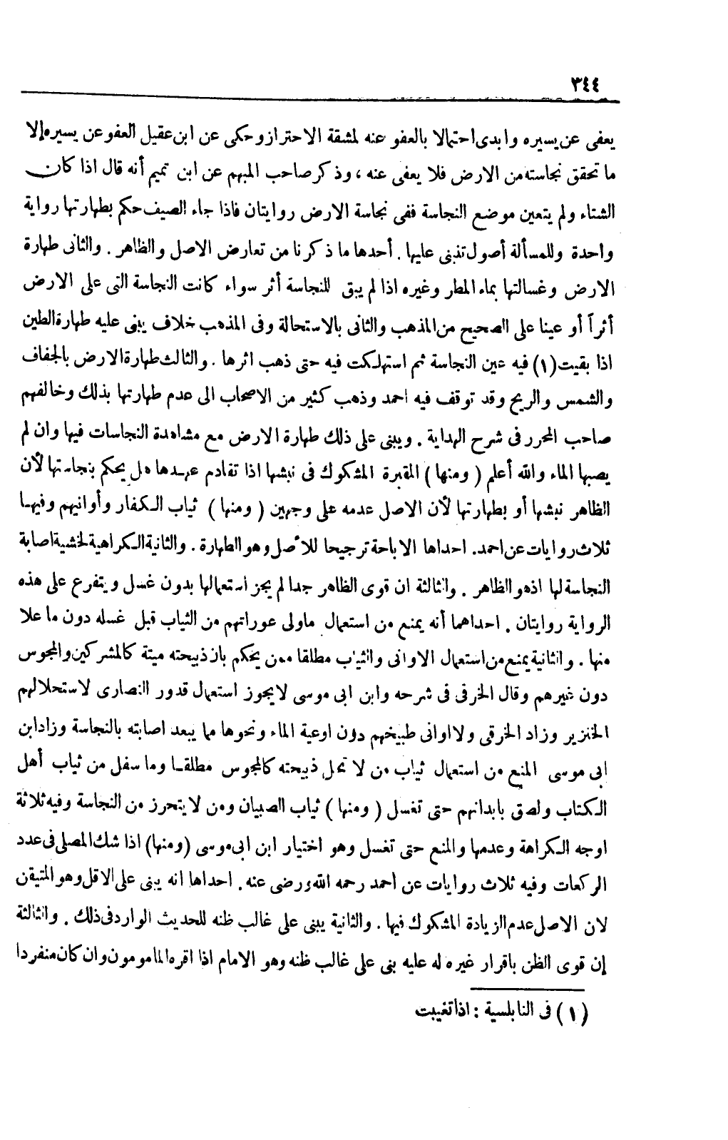 اسْتِعْمَالِ ثِيَابِ مَنْ لَا تَحِلُّ ذَبِيحَتُهُ كَالْمَجُوسِ مُطْلَقًا، وَمَا سَفَلَ مِنْ ثِيَابِ أَهْلِ الْكِتَابِ وَلَصِقَ بِأَبْدَانِهِمْ حَتَّى تُغْسَلَ.