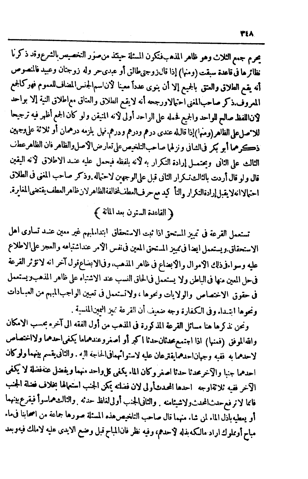 وَنَحْنُ نَذْكُرُ هَاهُنَا مَسَائِلَ الْقُرْعَةِ الْمَذْكُورَةِ فِي الْمَذْهَبِ مِنْ أَوَّلِ الْفِقْهِ إلَى آخِرِهِ بِحَسَبِ الْإِمْكَانِ، وَاَللَّهُ الْمُوفَّق (فَمِنْهَا) إذَا اجْتَمَعَ مُحْدِثَانِ حَدَثًا أَكْبَرَ أَوْ أَصْغَرَ وَعِنْدَهُمَا مَا يَكْفِي أَحَدَهُمَا وَلَا اخْتِصَاصَ لِأَحَدِهِمَا بِهِ فَفِيهِ وَجْهَانِ:
