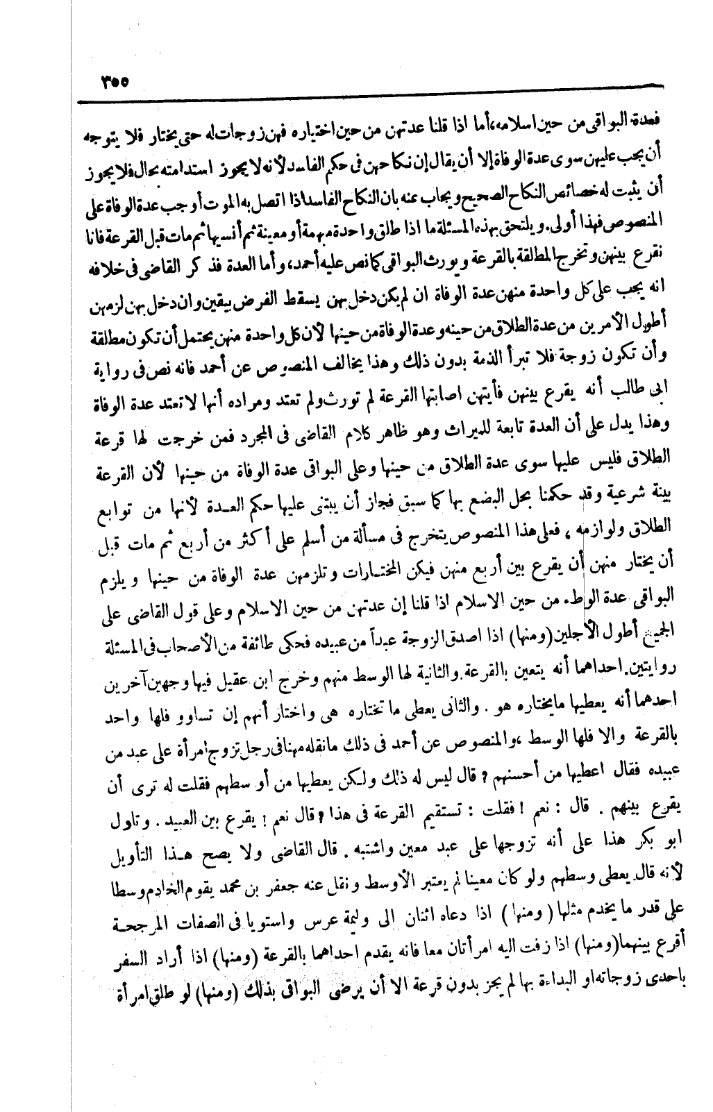 وَيَلْتَحِقُ بِهَذِهِ الْمَسْأَلَةِ مَا إذَا طَلَّقَ وَاحِدَةً مُبْهَمَةً أَوْ مُعَيَّنَةً ثُمَّ أُنْسِيهَا ثُمَّ مَاتَ قَبْلَ الْقُرْعَةِ فَإِنَّا نُقْرِعُ بَيْنَهُنَّ وَتَخْرُجُ الْمُطَلَّقَةُ بِالْقُرْعَةِ وَيُورَثُ الْبَوَاقِي كَمَا نَصَّ عَلَيْهِ أَحْمَدُ، وَأَمَّا الْعِدَّةُ فَذَكَرَ الْقَاضِي فِي خِلَافِهِ أَنَّهُ يَجِبُ عَلَى كُلِّ وَاحِدَةٍ مِنْهُنَّ عِدَّةُ الْوَفَاةِ إنْ لَمْ يَكُنْ دَخَلَ بِهِنَّ يَسْقُطُ الْفَرْضُ بِيَقِينٍ وَإِنْ دَخَلَ بِهِنَّ لَزِمَهُنَّ أَطْوَلُ الْأَمْرَيْنِ مِنْ عِدَّةِ الطَّلَاقِ وَمِنْ حِينِهِ وَعِدَّةُ الْوَفَاةِ مِنْ حِينِهَا ; لِأَنَّ كُلَّ وَاحِدَةٍ مِنْهُنَّ يُحْتَمَلُ أَنْ تَكُونَ مُطَلَّقَةً وَأَنْ تَكُونَ زَوْجَةً، فَلَا تَبْرَأُ الذِّمَّةُ بِدُونِ ذَلِكَ وَهَذَا يُخَالِفُ الْمَنْصُوصَ عَنْ أَحْمَدَ فَإِنَّهُ نَصَّ فِي رِوَايَةِ أَبِي طَالِبٍ أَنَّهُ يُقْرِعُ بَيْنَهُنَّ فَأَيَّتُهُنَّ أَصَابَتْهَا الْقُرْعَةُ لَمْ تُوَرَّثْ وَلَمْ تَعْتَدَّ، وَمُرَادُهُ أَنَّهَا لَمْ تَعْتَدَّ عِدَّةَ الْوَفَاةِ وَهَذَا يَدُلُّ عَلَى أَنَّ الْعِدَّةَ تَابِعَةٌ لِلْمِيرَاثِ وَهُوَ ظَاهِرُ كَلَامِ الْقَاضِي فِي الْمُجَرَّدِ فَمَنْ خَرَجَتْ لَهَا قُرْعَةُ الطَّلَاقِ فَلَيْسَ عَلَيْهَا سِوَى عِدَّةِ الطَّلَاقِ مِنْ حِينِهَا، وَعَلَى الْبَوَاقِي عِدَّةُ الْوَفَاةِ مِنْ حِينِهَا ; لِأَنَّ الْقُرْعَةَ بَيِّنَةٌ شَرْعِيَّةٌ وَقَدْ حَكَمْنَا بِحِلِّ الْبُضْعِ بِهَا كَمَا سَبَقَ فَجَازَ أَنْ يَبْتَنِيَ عَلَيْهَا حُكْمُ الْعِدَّةِ لِأَنَّهَا مِنْ تَوَابِعِ الطَّلَاقِ وَلَوَازِمِهِ، فَعَلَى هَذَا الْمَنْصُوصِ يَتَخَرَّجُ فِي مَسْأَلَةِ مَنْ أَسْلَمَ عَلَى أَكْثَرَ مِنْ أَرْبَعٍ ثُمَّ مَاتَ قَبْلَ أَنْ يَخْتَارَ مِنْهُنَّ أَنْ يُقْرِعَ بَيْنَ أَرْبَعٍ مِنْهُنَّ فَيَكُنَّ الْمُخْتَارَاتِ وَتَلْزَمُهُنَّ عِدَّةُ الْوَفَاةِ مِنْ حِينِهَا وَيَلْزَمُ السَّهْوَكَةَ عِدَّةُ الْوَطْءِ مِنْ حِينِ الْإِسْلَامِ إذَا قُلْنَا إنَّ عِدَّتَهُنَّ مِنْ حِينِ الْإِسْلَامِ وَعَلَى قَوْلِ الْقَاضِي عَلَى الْجَمِيعِ أَطْوَلُ الْأَجَلَيْنِ.