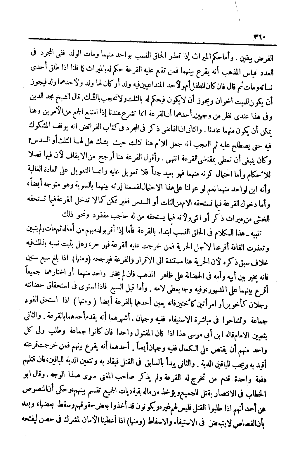وَأَمَّا دُخُولُ الْقُرْعَةِ فِيمَا تَسْتَحِقُّهُ الْأُمُّ مِنْ الثُّلُثِ أَوْ السُّدُسِ فَغَيْرُ مُمْكِنٍ، كَمَا لَا تَدْخُلُ الْقُرْعَةُ فِيمَا تَسْتَحِقُّهُ الْخُنْثَى مِنْ مِيرَاثِ ذَكَرٍ أَوْ أُنْثَى وَلِأَنَّهُ فِيمَا يَسْتَحِقُّهُ مَنْ لَهُ حَاجِبٌ مَفْقُودٌ وَنَحْوُ ذَلِكَ. تَنْبِيهٌ: هَذَا الْكَلَامُ فِي إلْحَاقِ النَّسَبِ ابْتِدَاءً بِالْقُرْعَةِ فَأَمَّا إذَا أَقَرَّ بِوَلَدٍ مُبْهَمٍ مِنْ أَمَةٍ لَهُ ثُمَّ مَاتَ وَلَمْ يَتَبَيَّنَ وَتَعَذَّرَتْ الْقَافَةُ أَقْرَعْنَا لِأَجْلِ الْحُرِّيَّةِ فَمَنْ خَرَجَتْ عَلَيْهِ الْقُرْعَةُ فَهُوَ حُرٌّ، وَهَلْ يَثْبُتُ نَسَبُهُ بِذَلِكَ؟ فِيهِ خِلَافٌ سَبَقَ ذِكْرُهُ ; لِأَنَّ الْحُرِّيَّةَ هُنَا مُسْتَنِدَةٌ إلَى الْإِقْرَارِ وَالْقُرْعَةِ فَيُرَجِّحُهُ