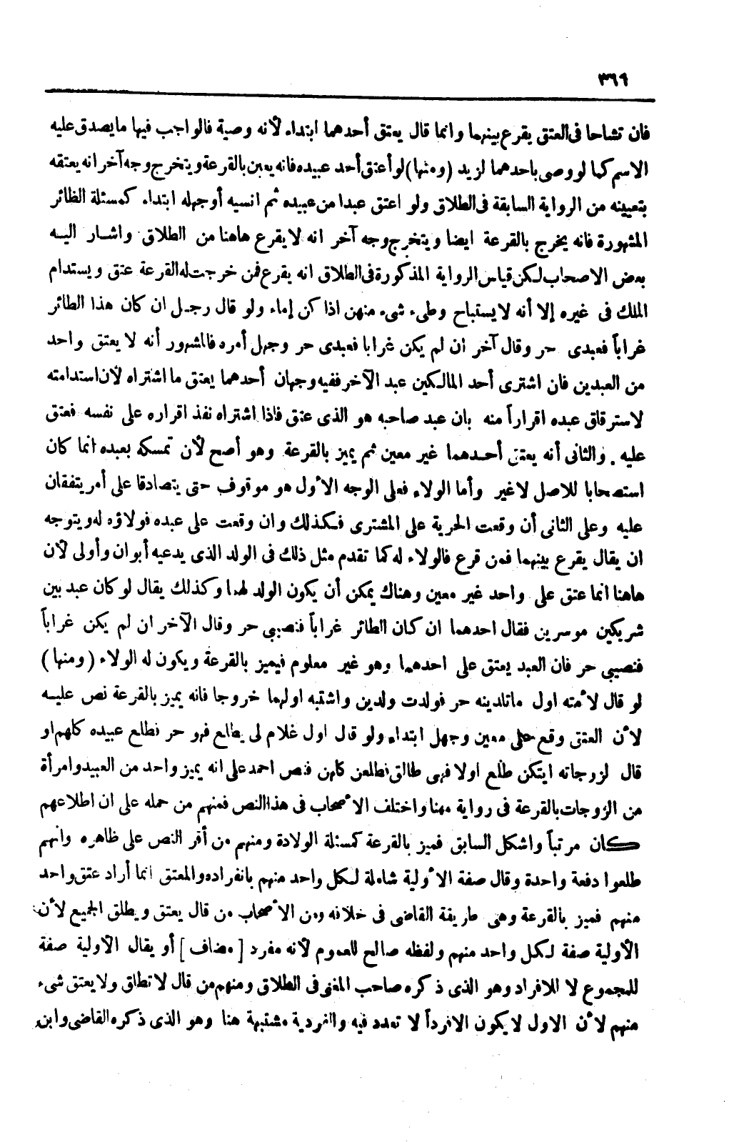 (وَمِنْهَا) لَوْ عَتَقَ أَحَدَ عَبِيدِهِ فَإِنَّهُ يُعَيَّنُ بِالْقُرْعَةِ وَيَتَخَرَّجُ وَجْهٌ آخَرُ أَنَّهُ يَعْتِقُهُ بِتَعْيِينِهِ مِنْ الرِّوَايَةِ السَّابِقَةِ فِي الطَّلَاقِ وَلَوْ أَعْتَقَ عَبْدًا مِنْ عَبِيدِهِ ثُمَّ أُنْسِيه أَوْ جَهِلَهُ ابْتِدَاءً كَمَسْأَلَةِ الطَّائِرِ الْمَشْهُورَةِ فَإِنَّهُ يَخْرُجُ بِالْقُرْعَةِ أَيْضًا وَيَتَخَرَّجُ وَجْهٌ آخَرُ أَنَّهُ لَا يُقْرِعُ هَاهُنَا مِنْ الطَّلَاقِ وَأَشَارَ إلَيْهِ بَعْضُ الْأَصْحَابِ لَكِنَّ قِيَاسَ الرِّوَايَةِ الْمَذْكُورَةِ فِي الطَّلَاقِ أَنَّهُ يُقْرِعُ فَمَنْ خَرَجَتْ لَهُ الْقُرْعَةُ عَتَقَ وَيُسْتَدَامُ الْمِلْكُ فِي غَيْرِهِ إلَّا أَنَّهُ لَا يُسْتَبَاحُ وَطْءُ شَيْءٍ مِنْهُنَّ إذَا كُنَّ إمَاءً وَلَوْ قَالَ رَجُلٌ: إنْ كَانَ هَذَا الطَّائِرُ غُرَابًا فَعَبْدِي حُرٌّ، وَقَالَ آخَرُ: إنْ لَمْ يَكُنْ غُرَابًا فَعَبْدِي حُرٌّ، وَجُهِلَ أَمْرُهُ فَالْمَشْهُورُ أَنَّهُ لَا يُعْتَقُ وَاحِدٌ مِنْ الْعَبْدَيْنِ فَإِنْ اشْتَرَى أَحَدُ الْمَالِكَيْنِ عَبْدَ الْآخَرِ فَفِيهِ وَجْهَانِ: