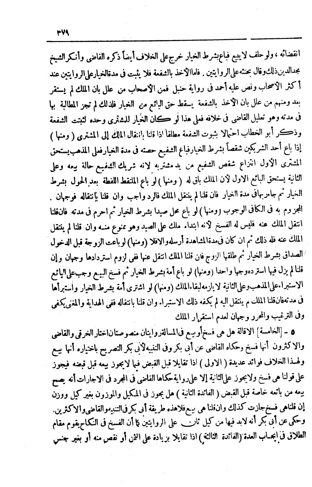 [الْخَامِسَةُ] الْإِقَالَةُ هَلْ هِيَ فَسْخٌ أَوْ بَيْعٌ فِي الْمَسْأَلَةِ رِوَايَتَانِ مَنْصُوصَتَانِ اخْتَارَ الْخِرَقِيِّ وَالْقَاضِي وَالْأَكْثَرُونَ أَنَّهَا فَسْخٌ وَحَكَاهُ الْقَاضِي عَنْ أَبِي بَكْرٍ وَفِي التَّنْبِيهِ لِأَبِي بَكْرٍ التَّصْرِيحُ بِاخْتِيَارِهِ أَنَّهَا بَيْعٌ.