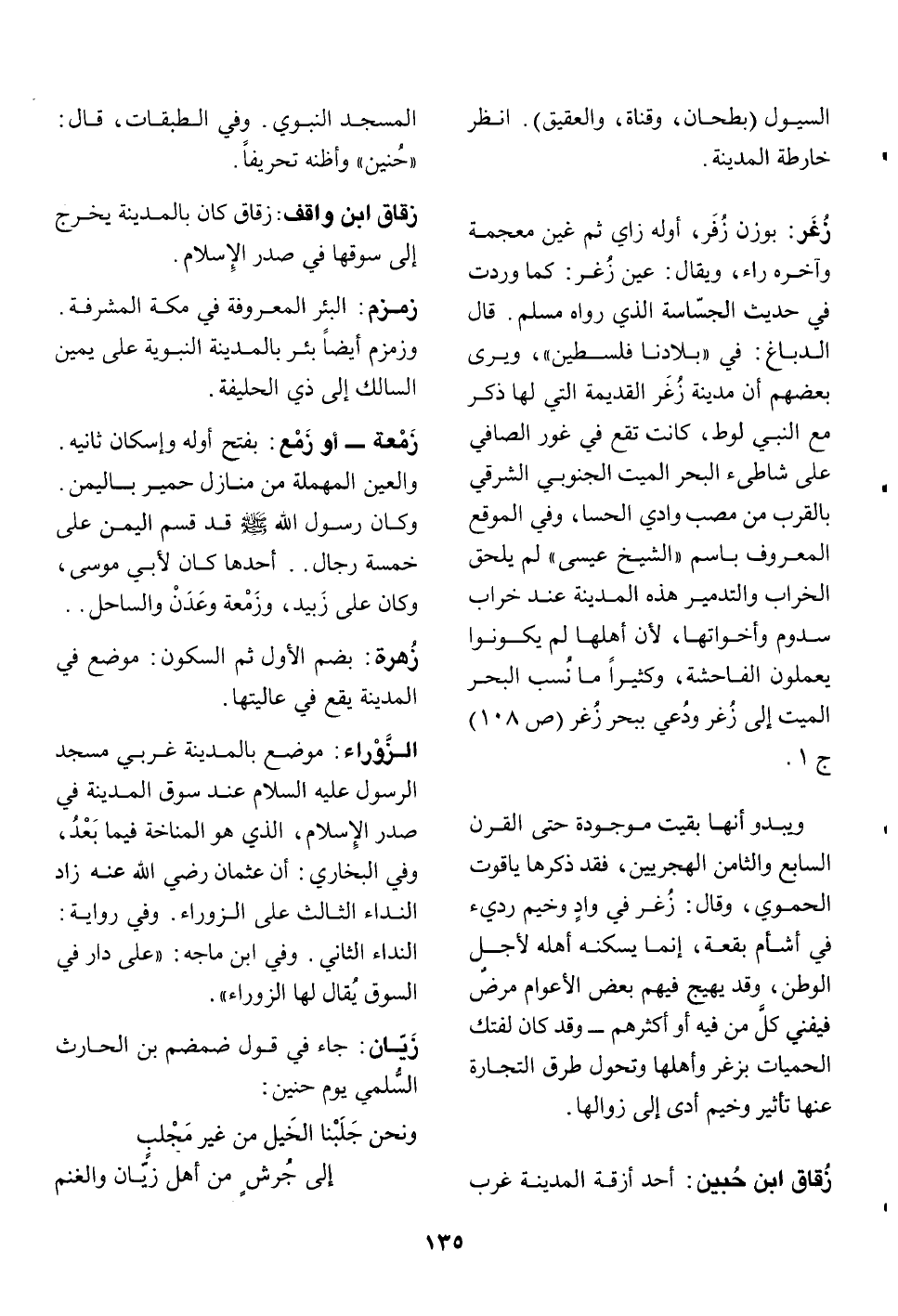 بوزن زفر، أوله زاي ثم غين معجمة وآخره راء، ويقال: عين زغر: كما وردت في حديث الجسّاسة الذي رواه مسلم. قال الدباغ: في «بلادنا فلسطين» ، ويرى بعضهم أن مدينة زغر القديمة التي لها ذكر مع النبي لوط، كانت تقع في غور الصافي على شاطىء البحر الميت الجنوبي الشرقي بالقرب من مصب وادي الحسا، وفي الموقع المعروف باسم «الشيخ عيسى» لم يلحق الخراب والتدمير هذه المدينة عند خراب سدوم وأخواتها، لأن أهلها لم يكونوا يعملون الفاحشة، وكثيرا ما نسب البحر الميت إلى زغر ودعي ببحر زغر (ص 108) ج 1.