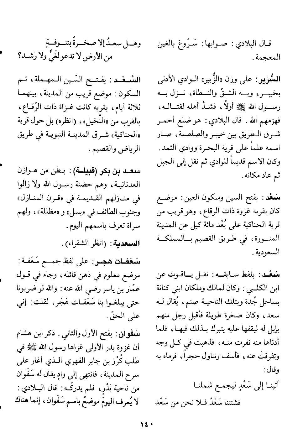 بلفظ سابقه: نقل ياقوت عن ابن الكلبي: وكان لمالك وملكان ابني كنانة بساحل جدة وبتلك الناحية صنم، يقال له سعد، وكان صخرة طويلة فأقبل رجل منهم بإبل له ليقفها عليه يتبرك بذلك فيها، فلما أدناها منه نفرت منه، فذهبت في كل وجه وتفرقت عنه، فأسف وتناول حجرا، فرماه به وقال: