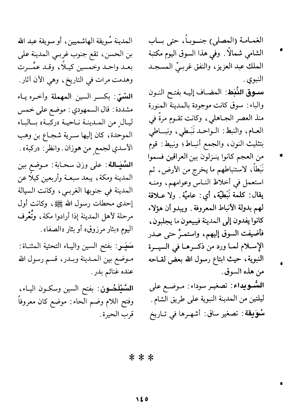 بكسر السين المهملة وآخره ياء مشددة: قال السمهودي: موضع على خمس ليال من المدينة ناحية «ركبة» بالباء الموحدة، كان إليها سرية شجاع بن وهب الأسدي لجمع من هوزان. وانظر: «ركبة» .