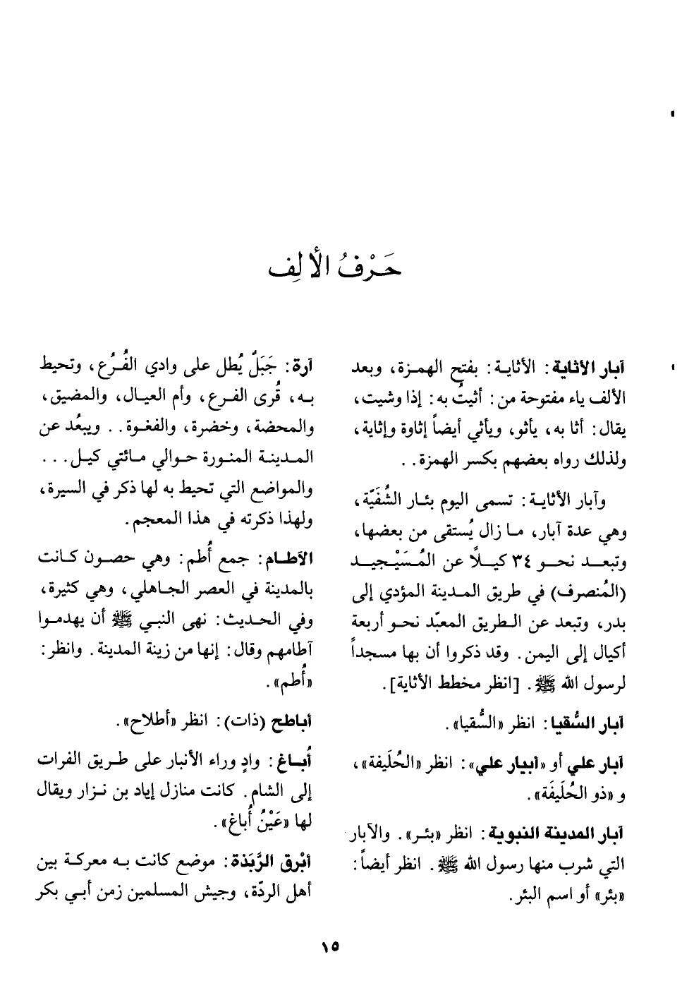 انظر «بئر» . والابار التي شرب منها رسول الله صلّى الله عليه وسلّم. انظر أيضا: