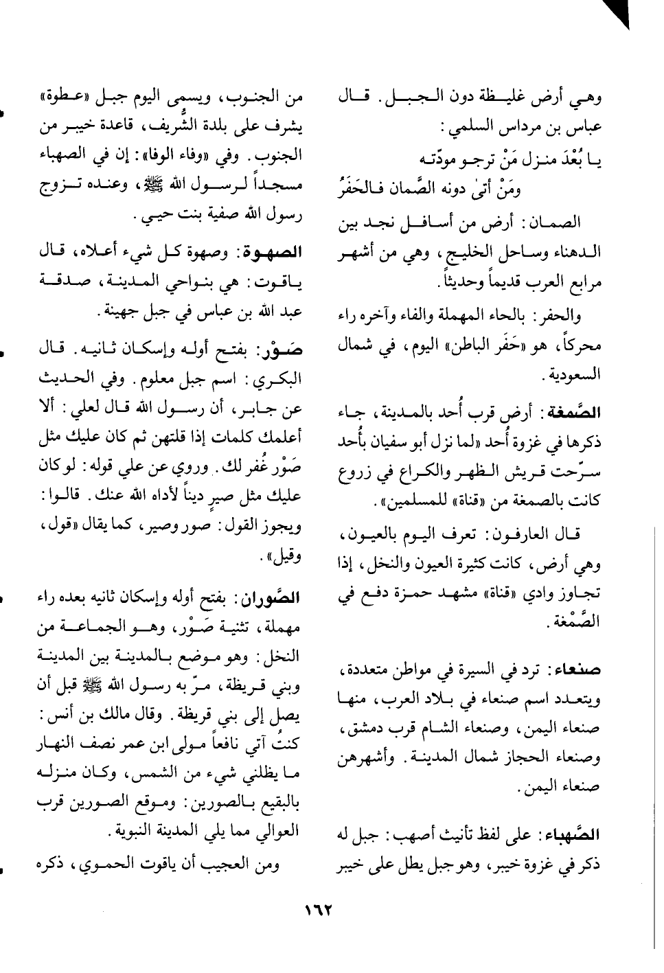 قال العارفون: تعرف اليوم بالعيون، وهي أرض، كانت كثيرة العيون والنخل، إذا تجاوز وادي «قناة» مشهد حمزة دفع في الصّمغة.
