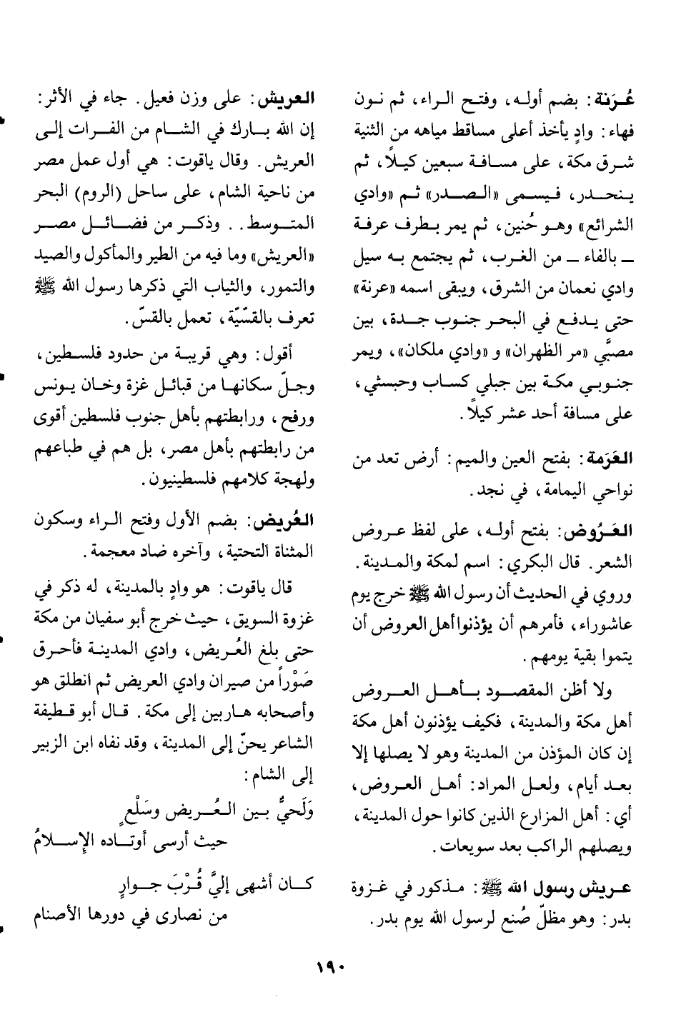 بفتح أوله، على لفظ عروض الشعر. قال البكري: اسم لمكة والمدينة.