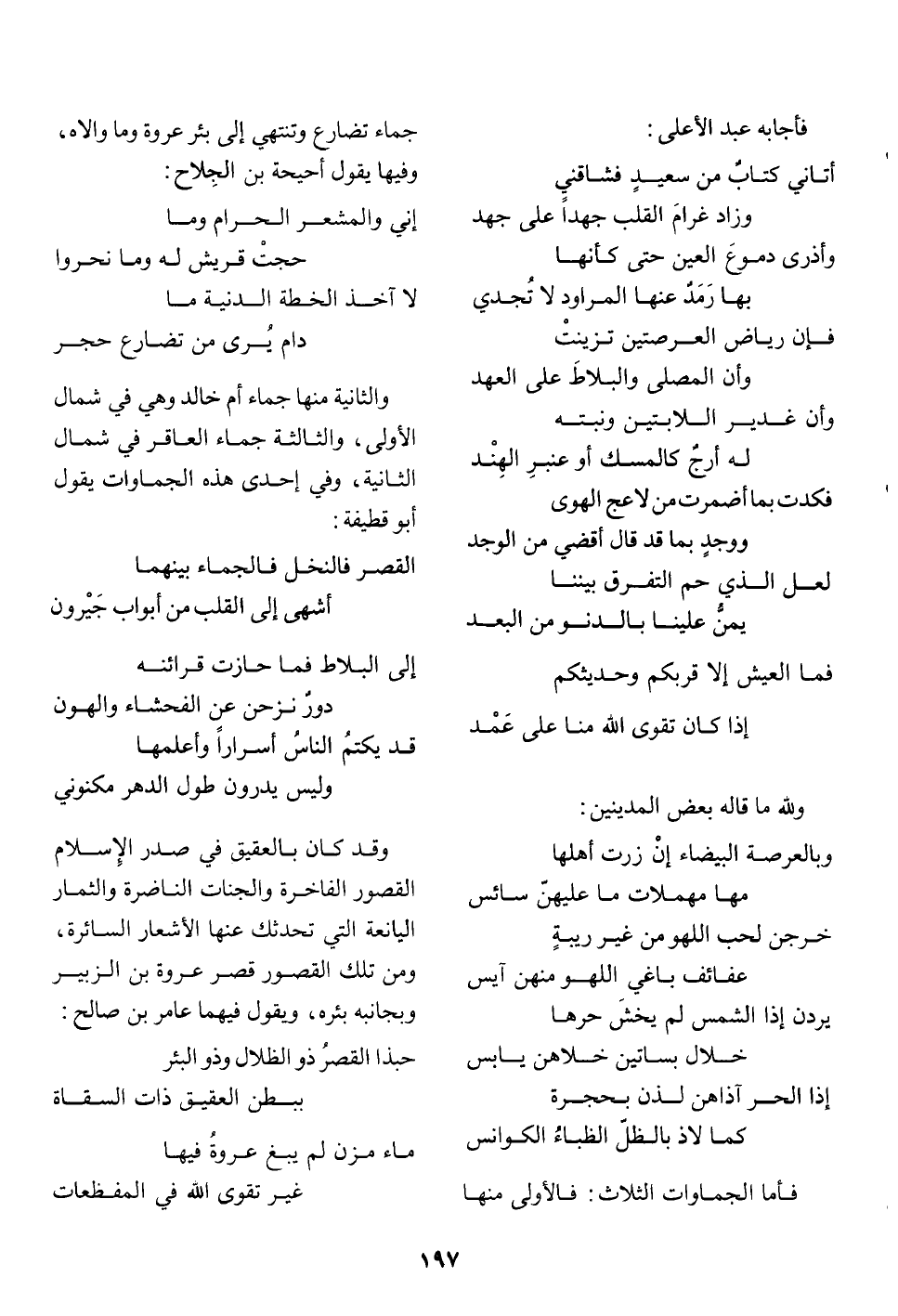 فأما الجماوات الثلاث: فالأولى منها جماء تضارع وتنتهي إلى بئر عروة وما والاه، وفيها يقول أحيحة بن الجلاح: