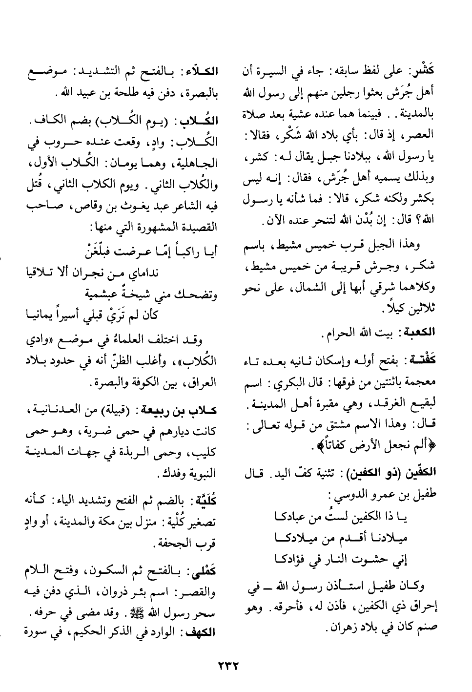 الكلاب: واد، وقعت عنده حروب في الجاهلية، وهما يومان: الكلاب الأول، والكلاب الثاني. ويوم الكلاب الثاني، قتل فيه الشاعر عبد يغوث بن وقاص، صاحب القصيدة المشهورة التي منها: