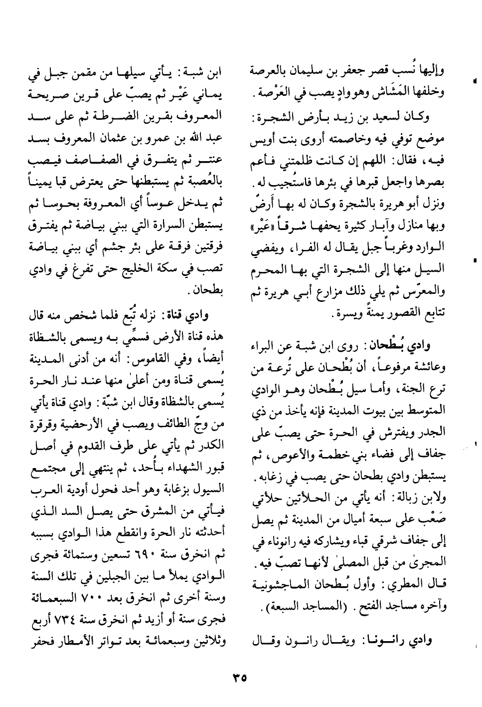 ولابن زبالة: أنه يأتي من الحلأتين حلأتي صعب على سبعة أميال من المدينة ثم يصل إلى جفاف شرقي قباء ويشاركه فيه رانوناء في المجرى من قبل المصلى لأنها تصبّ فيه.
